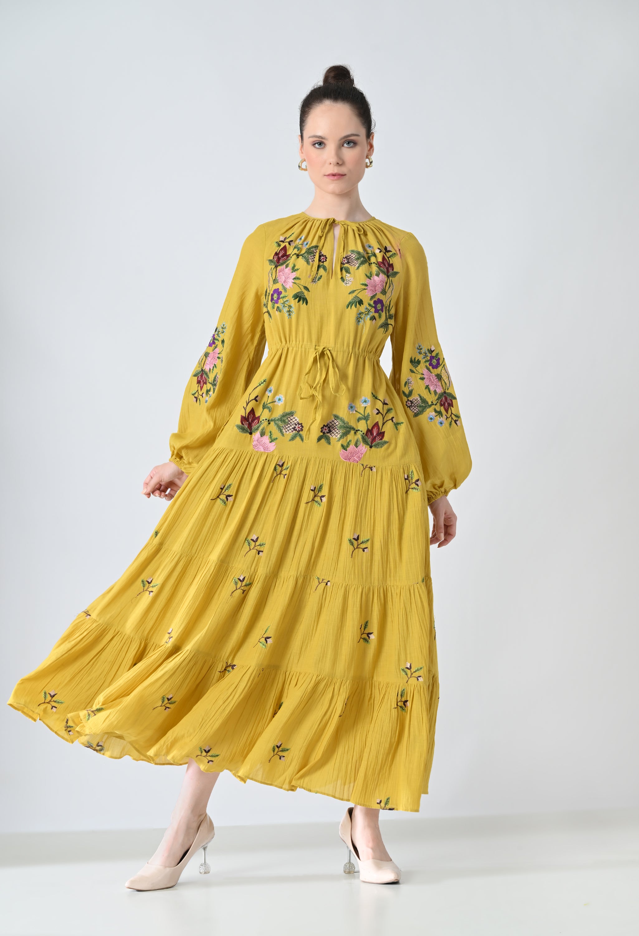 Sunflower Yellow Embroidered Midi Dress