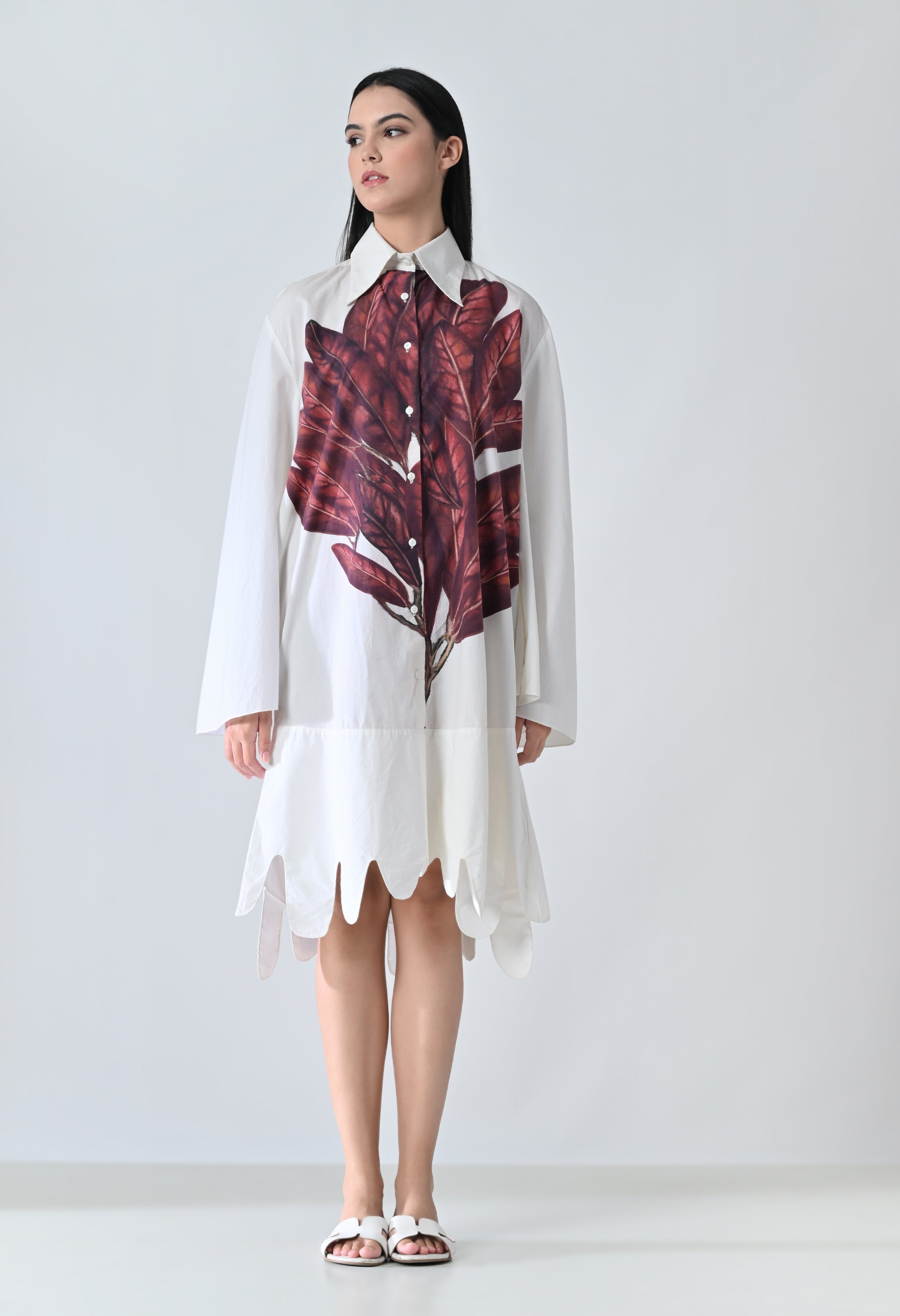 Crimson Leaf Prinred Dress