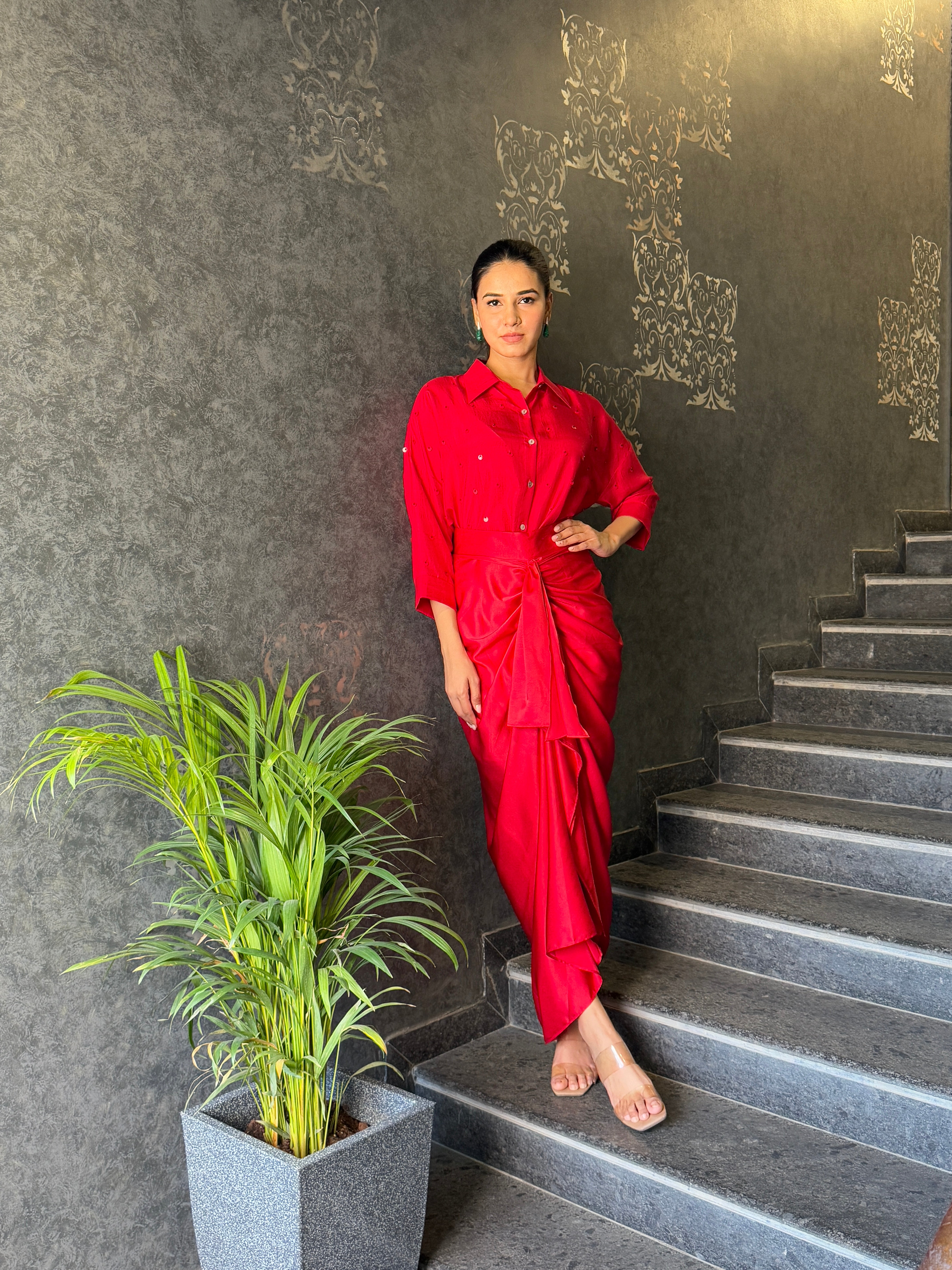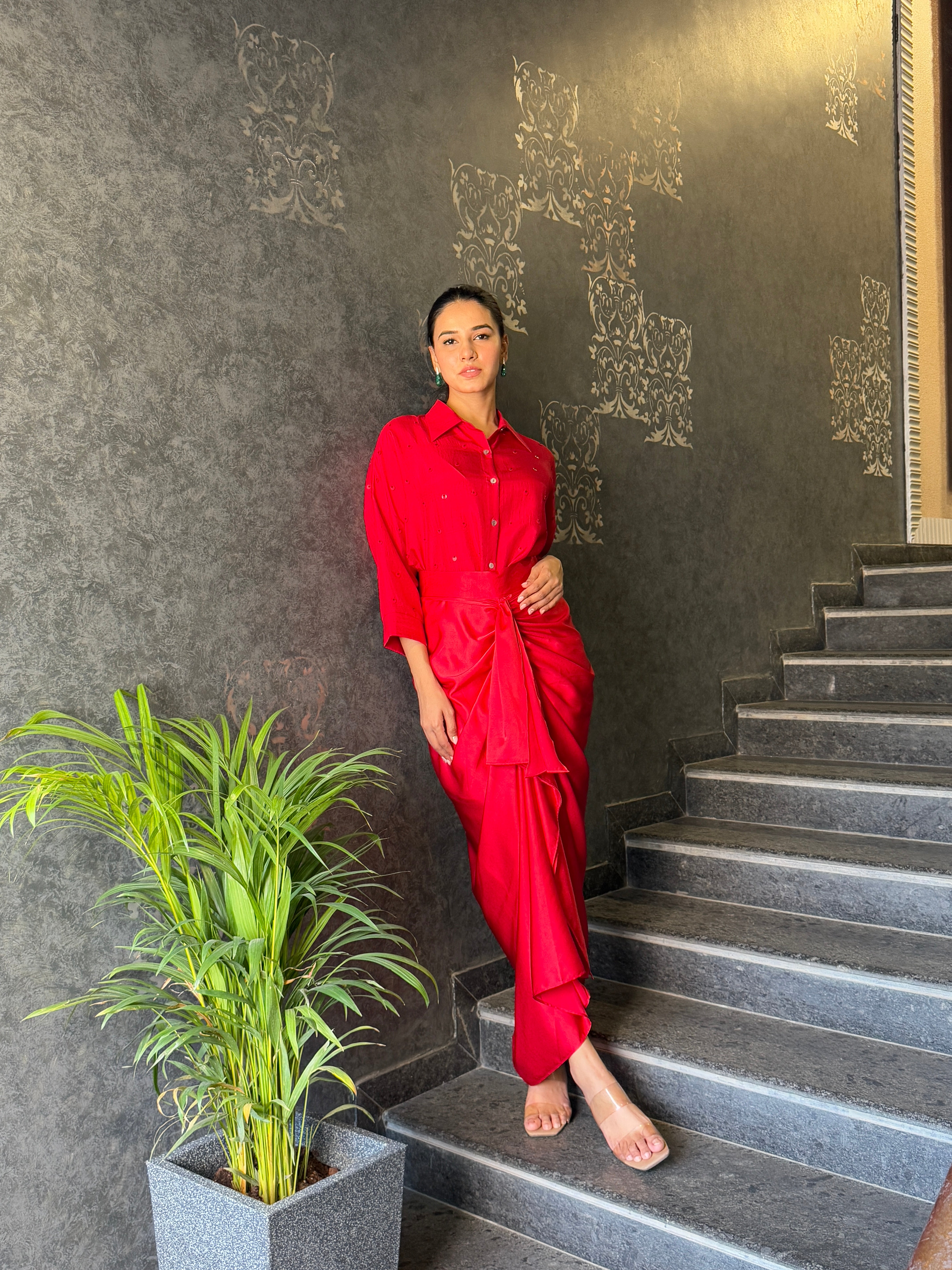 Fuchsia Pink Wrap-Around Ruffled Shirt