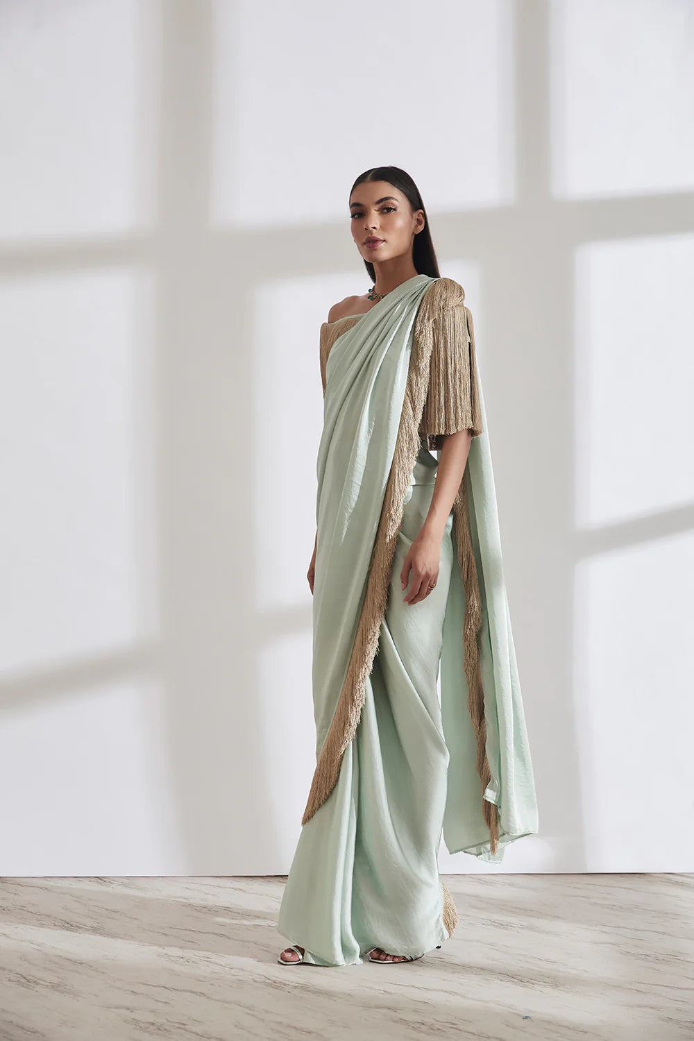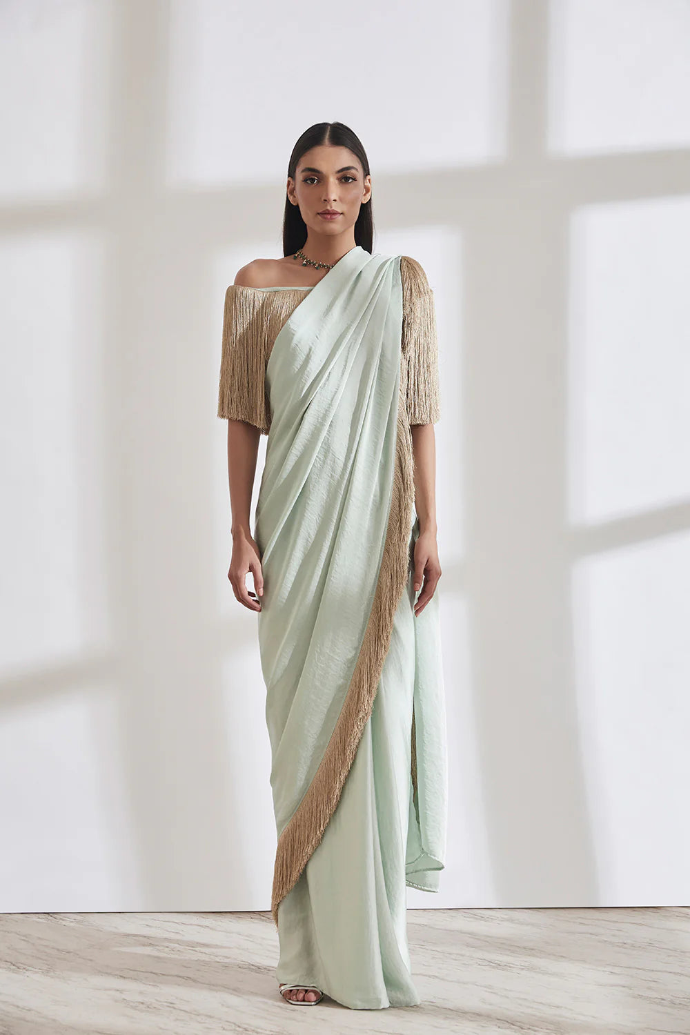 Noor Fringe Sari with Off Shoulder Fringe Top