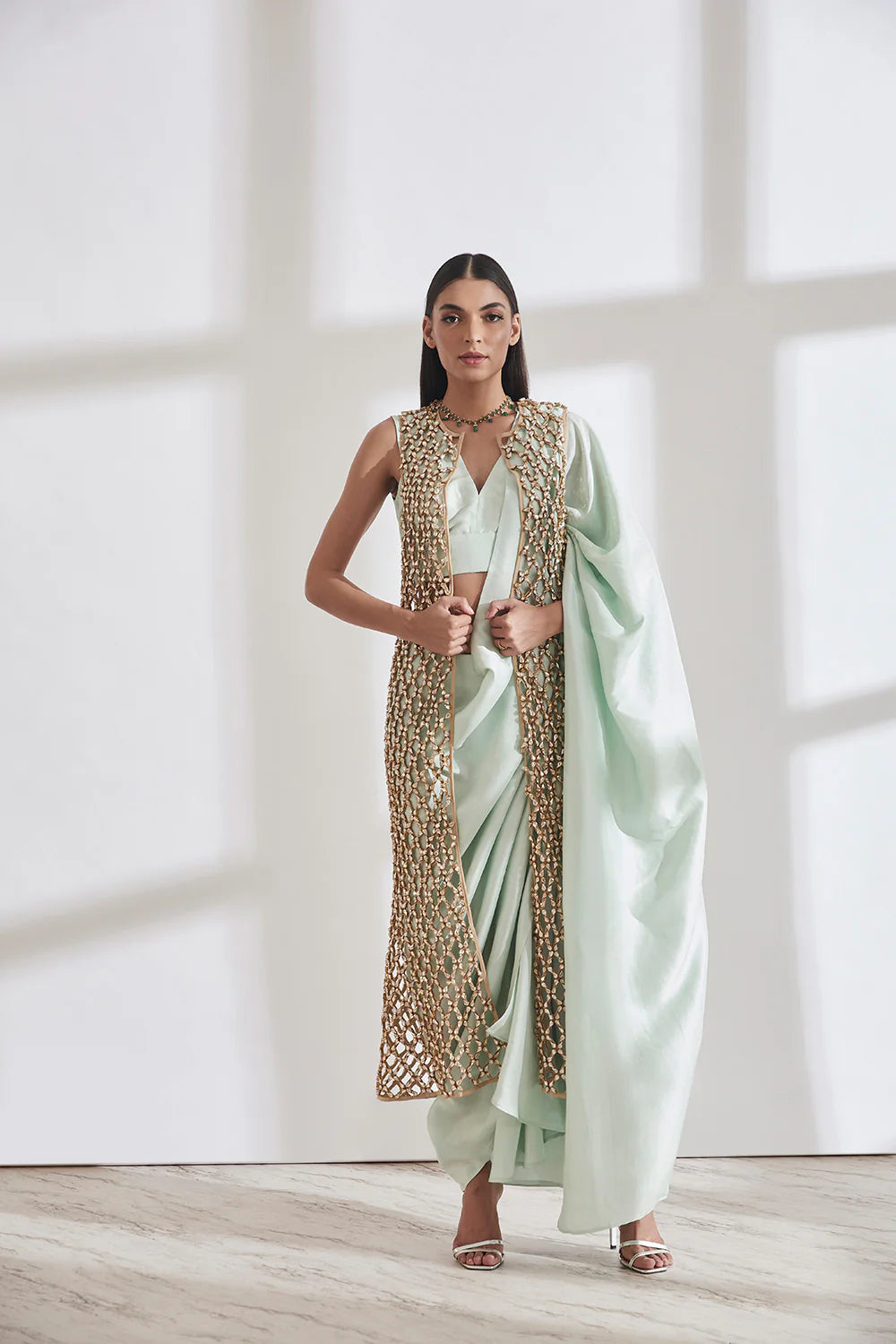 Masai Godet Sari with Vik Blouse & Honeycomb Jacket