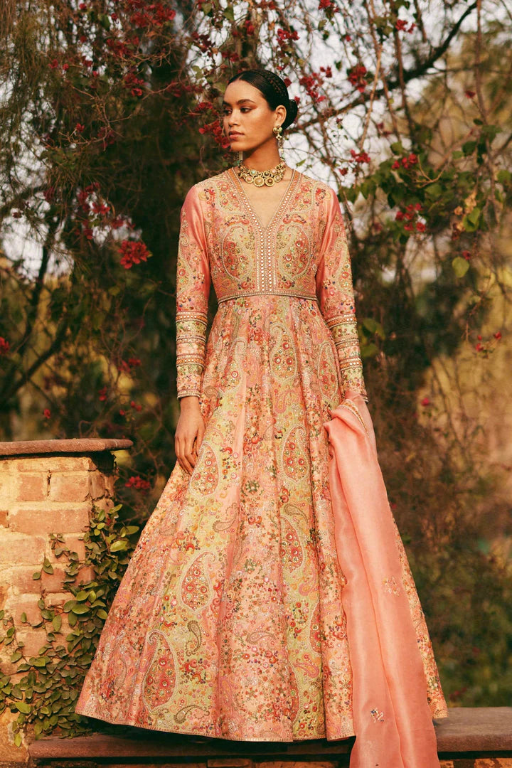 Peach Mughal Bano Kalidar Set