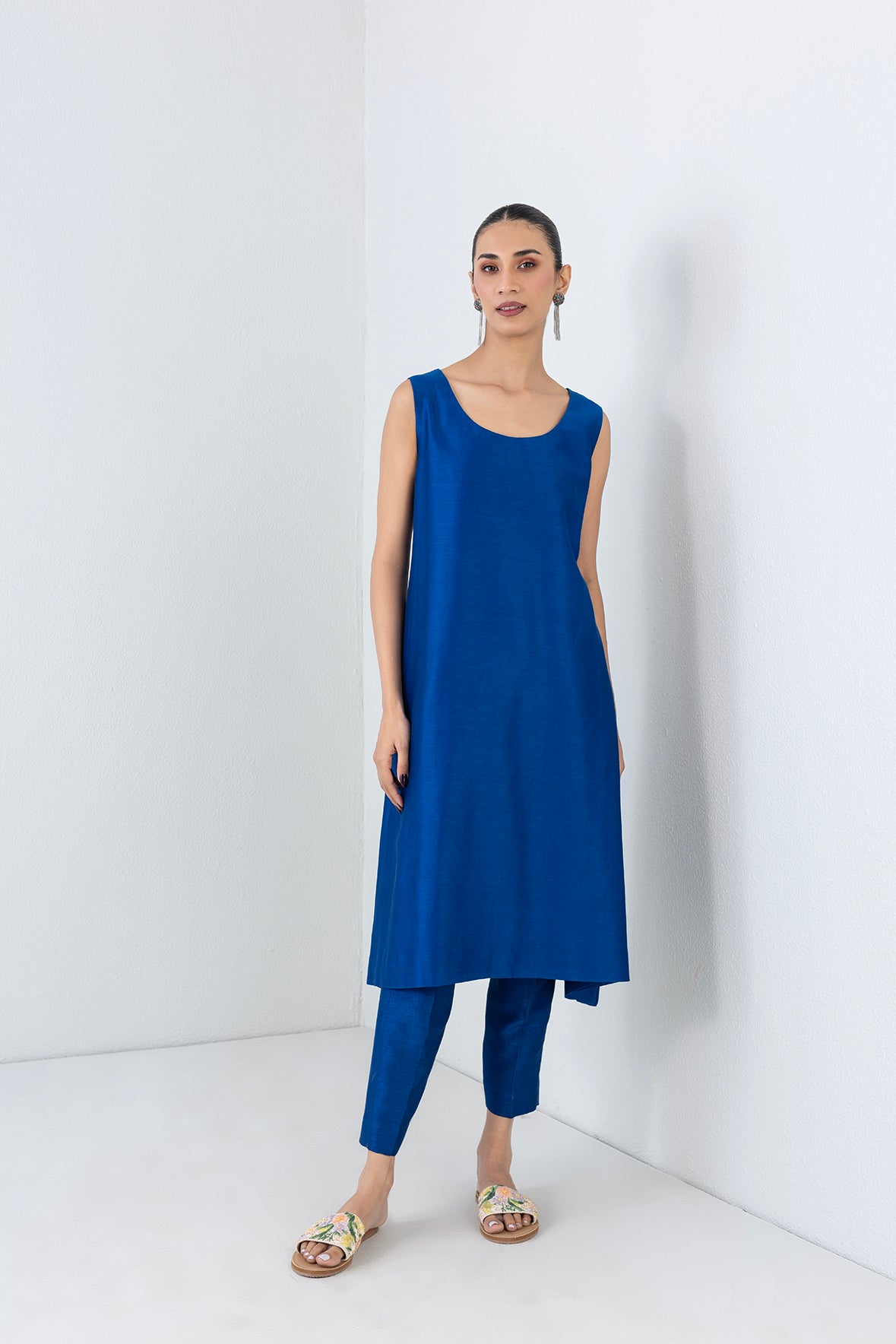 Blue Lagoon Dupion Floral Buta Printed Tunic