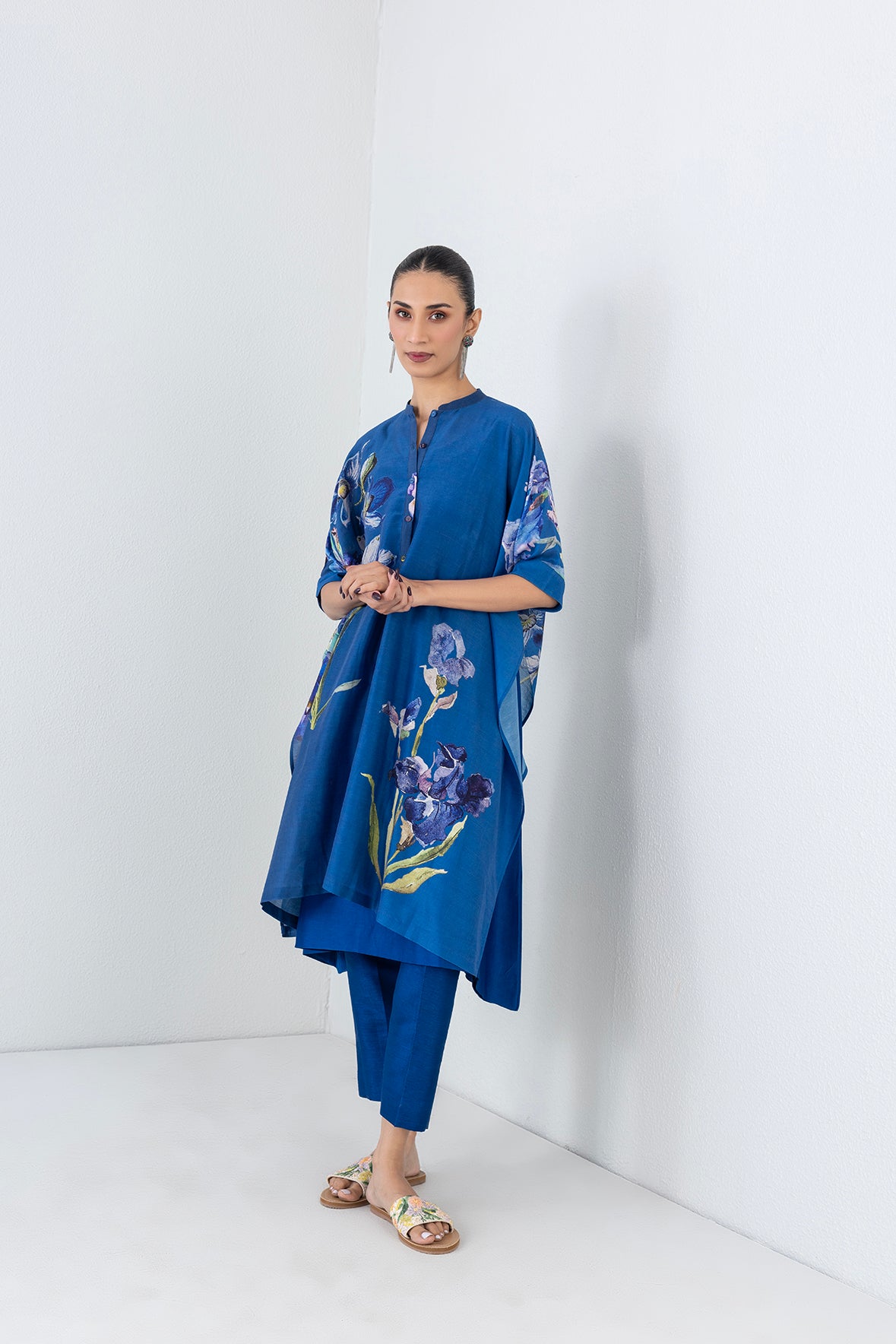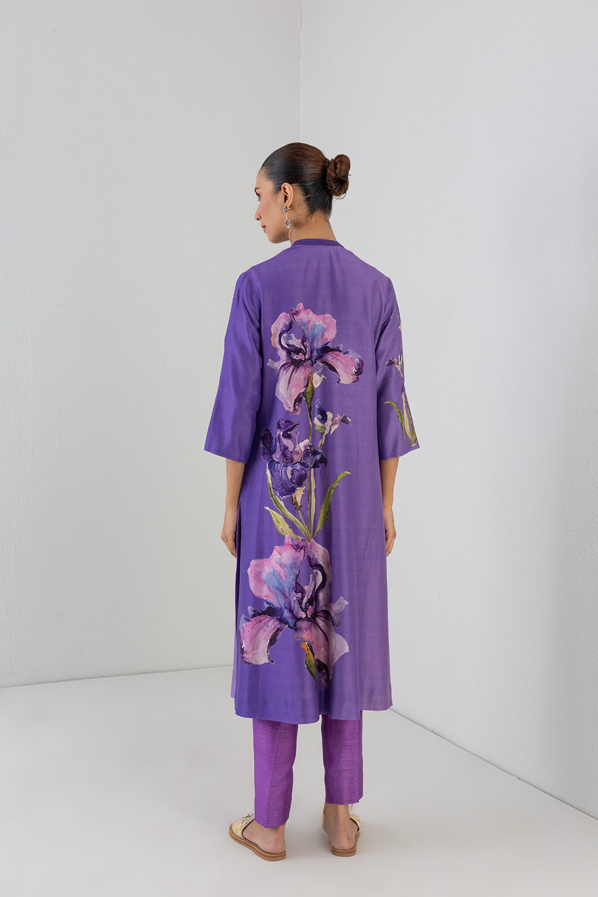 Violet Abyss Silk Chanderi Iris Lily Printed Tunic