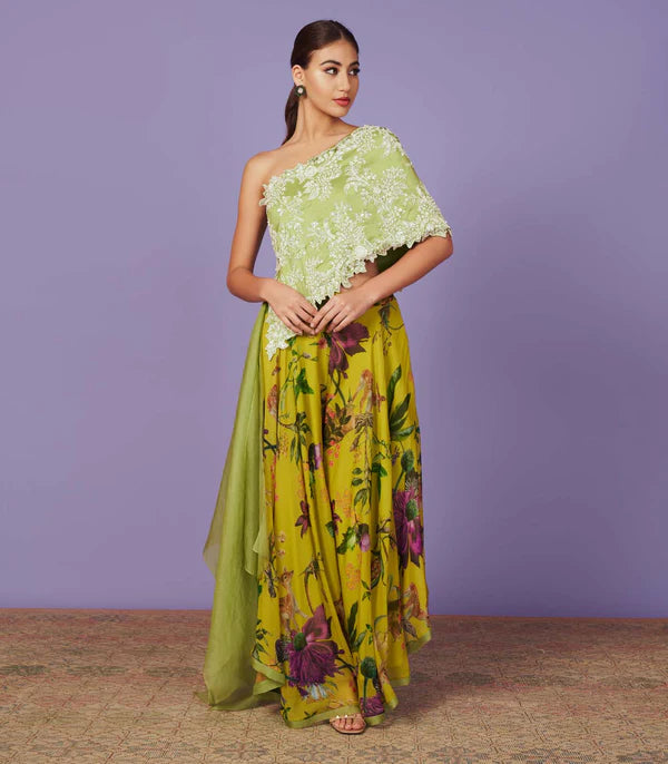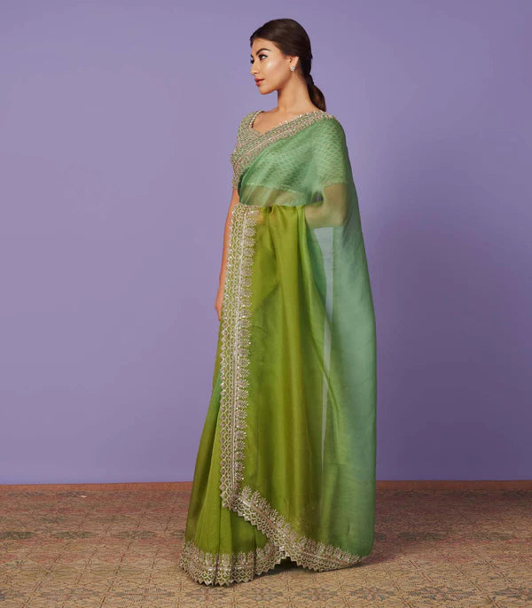 Green Organza Ombre Nadira Saree Set