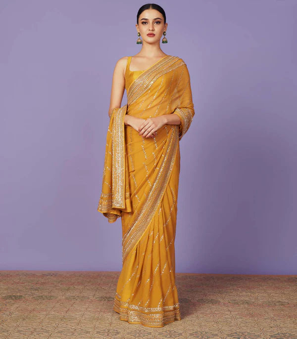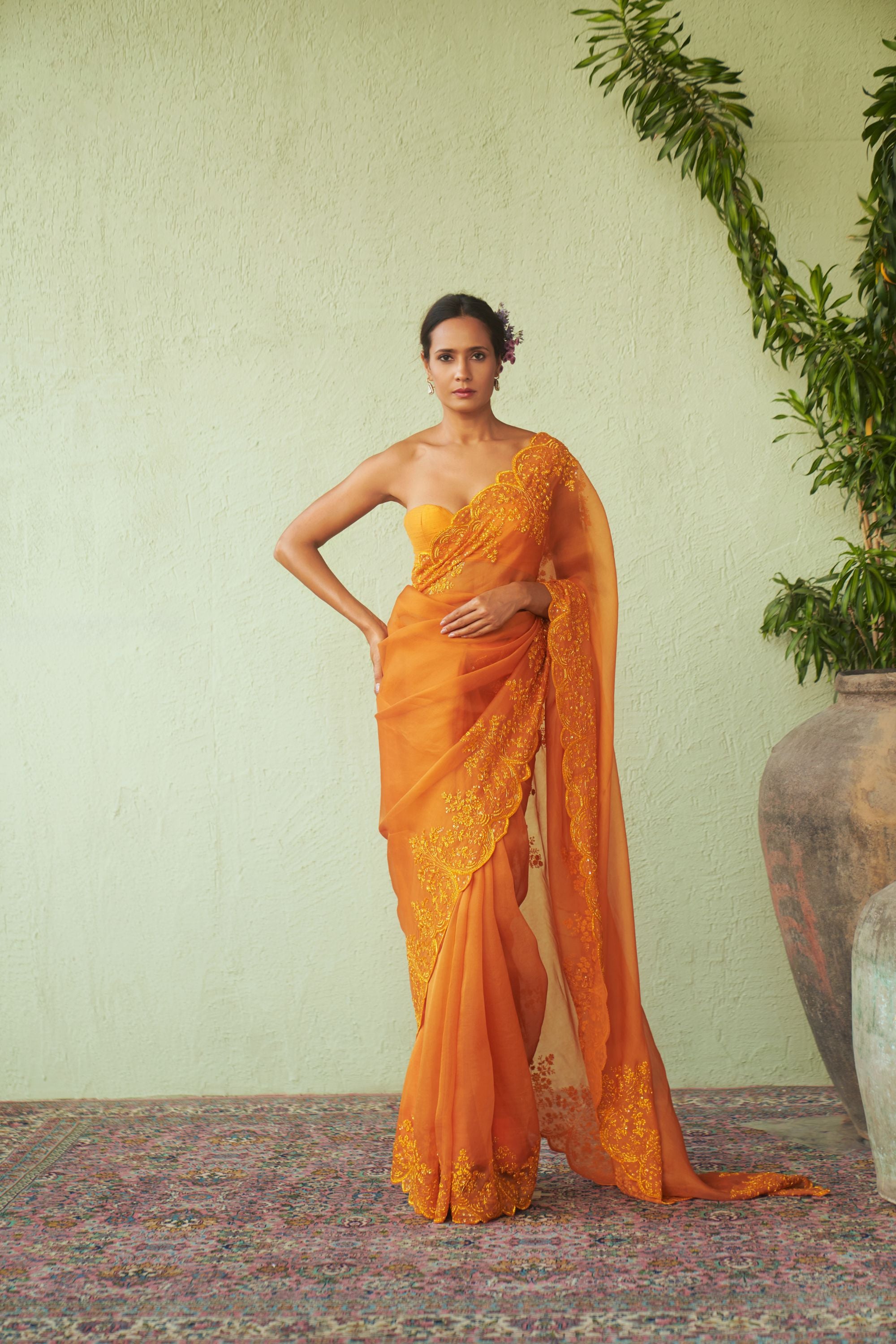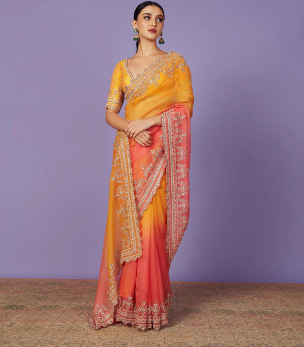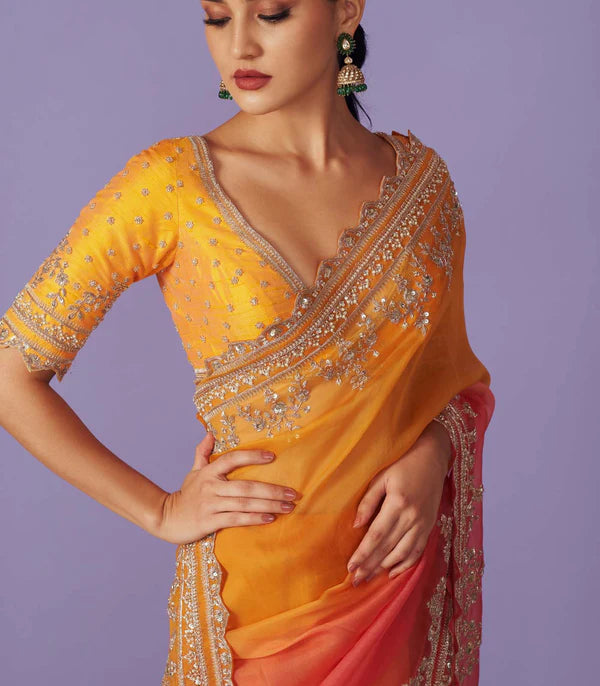 Yellow & Ivory Organza Ombre Nadira Saree Set