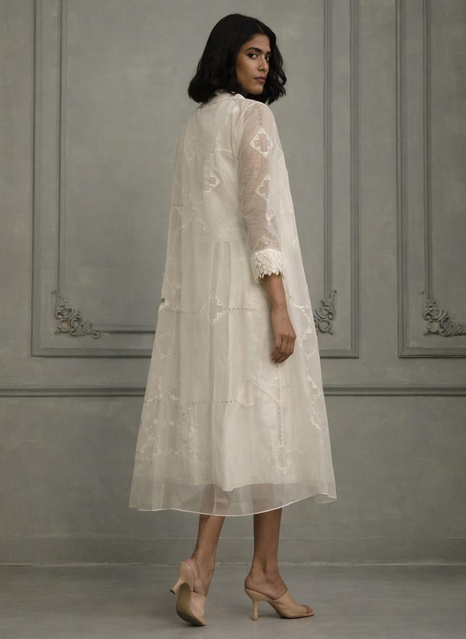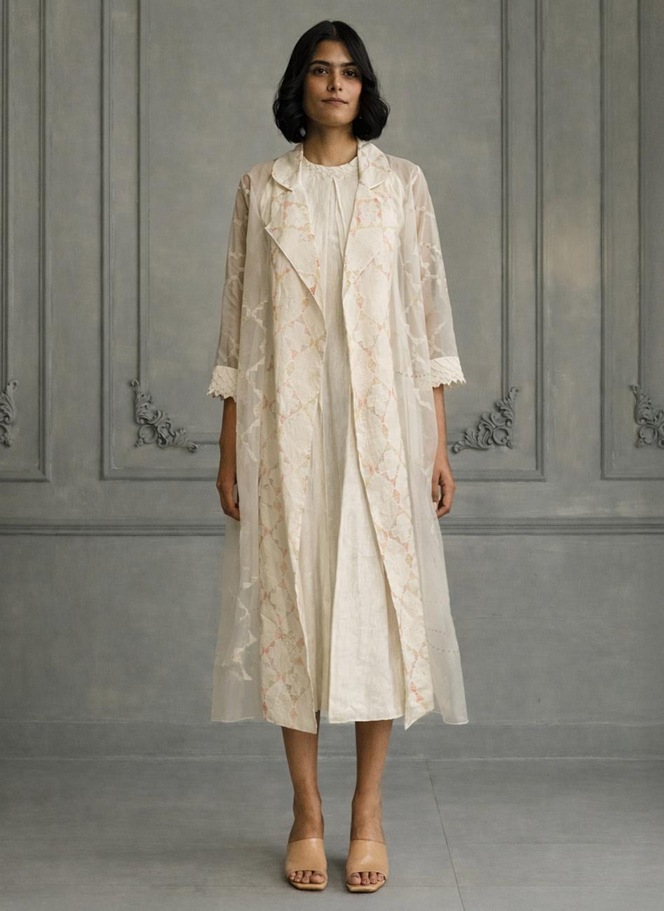 Ivory Double Layer Block Print Dress