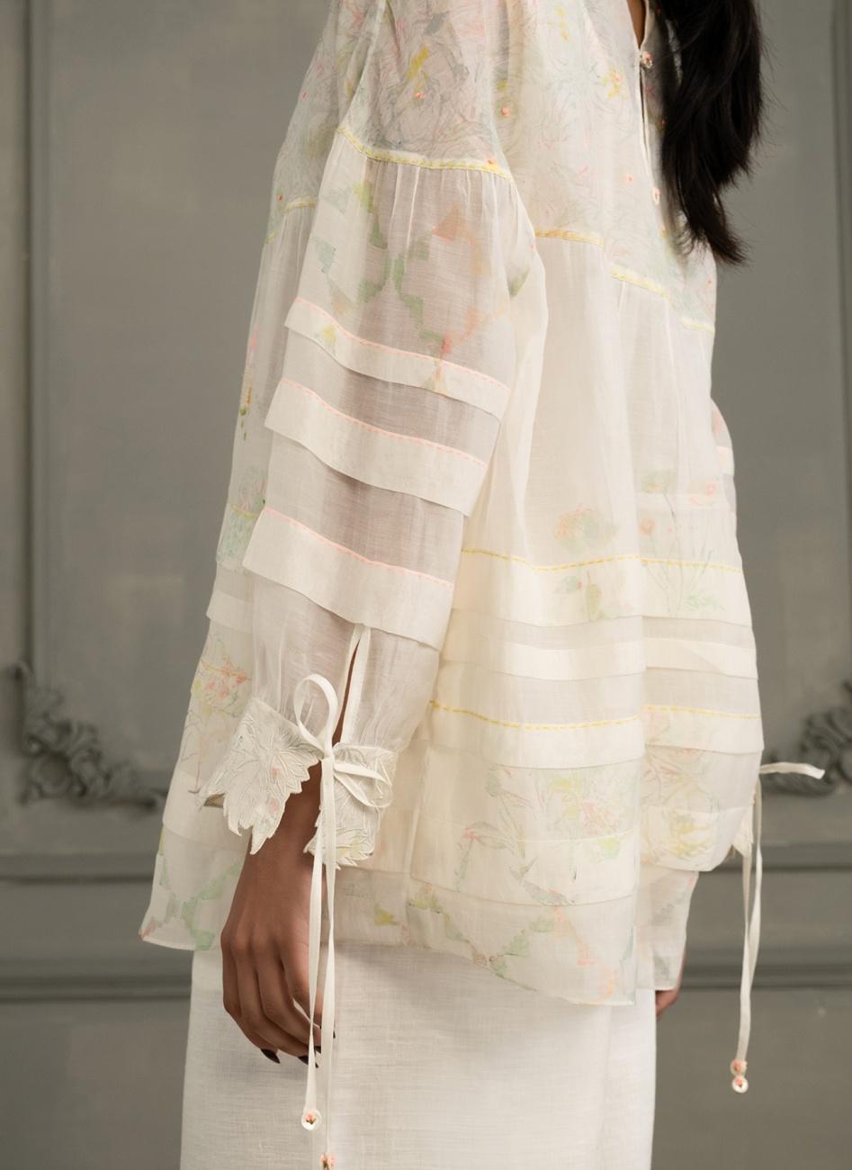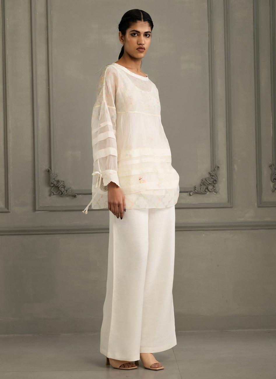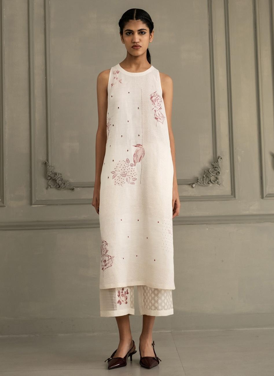 Ivory Block Print Embroidered Tunic with Pants
