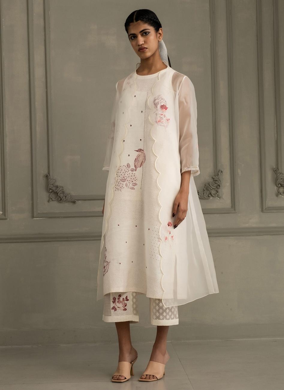 Ivory Embroidery & Block Print Jacket Set