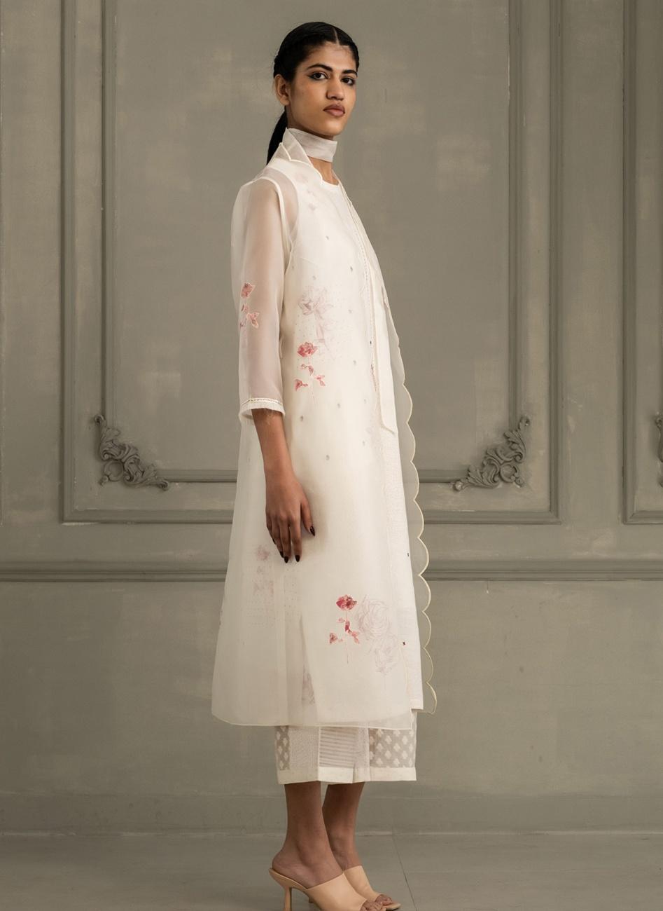 Ivory Rose Applique Work Scalloped Organza Jacket Set