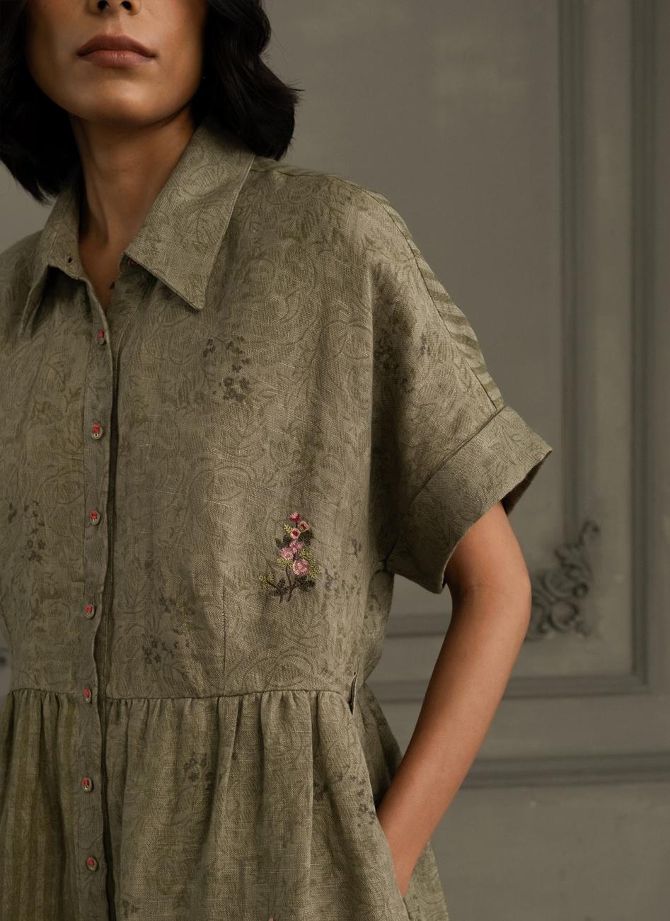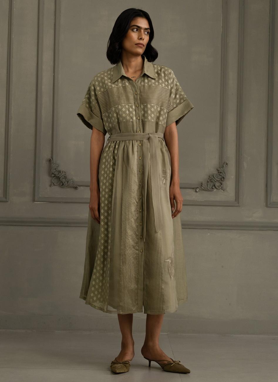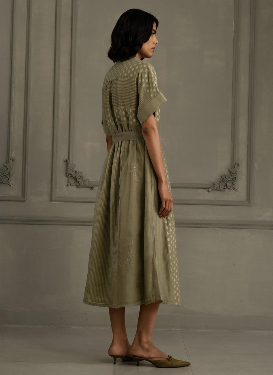 Sage Green Embroidered Dress with Belt