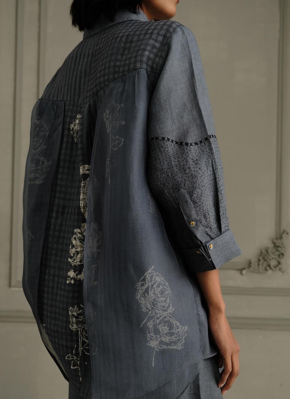Stone Blue Embroidered Shirt with Pants