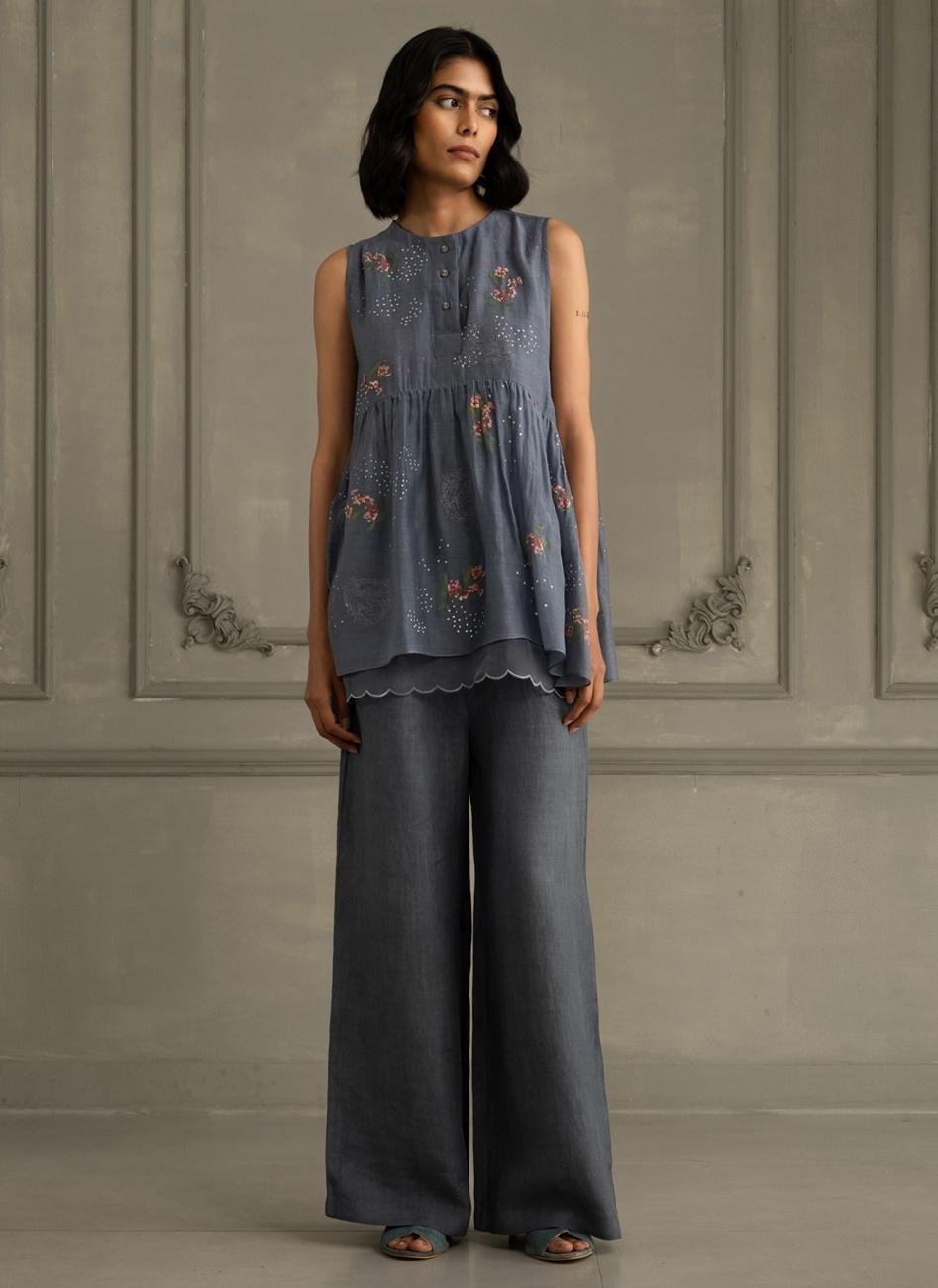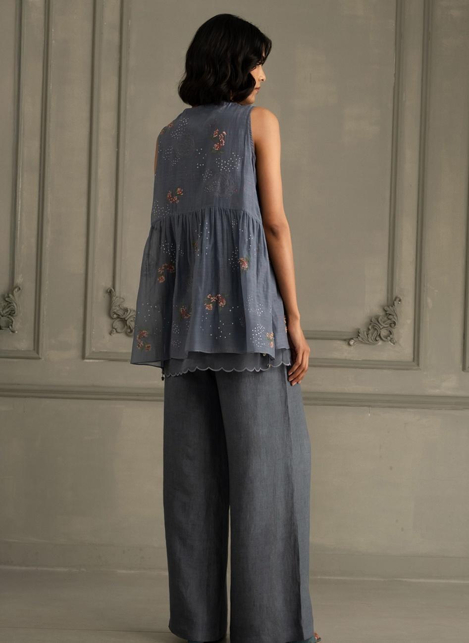 Stone Blue Embroidered Top with Pants