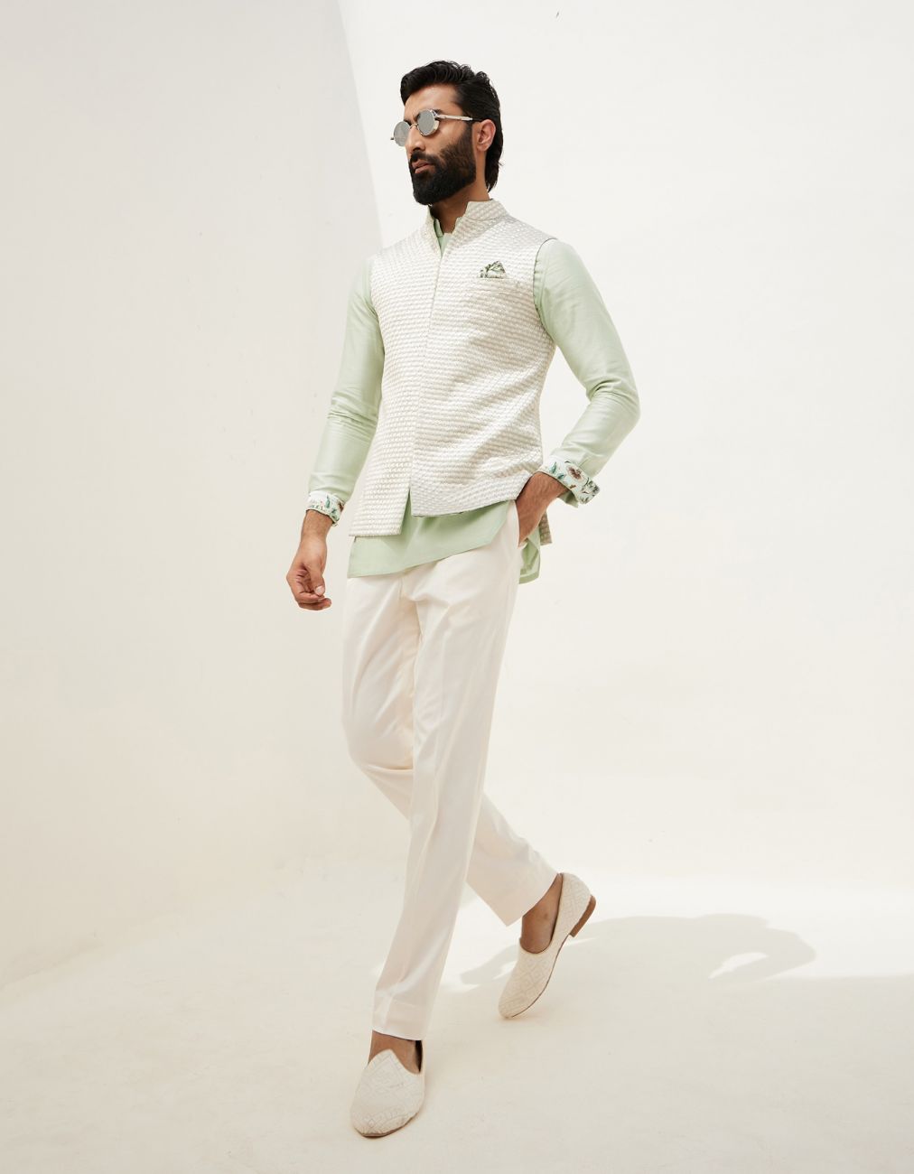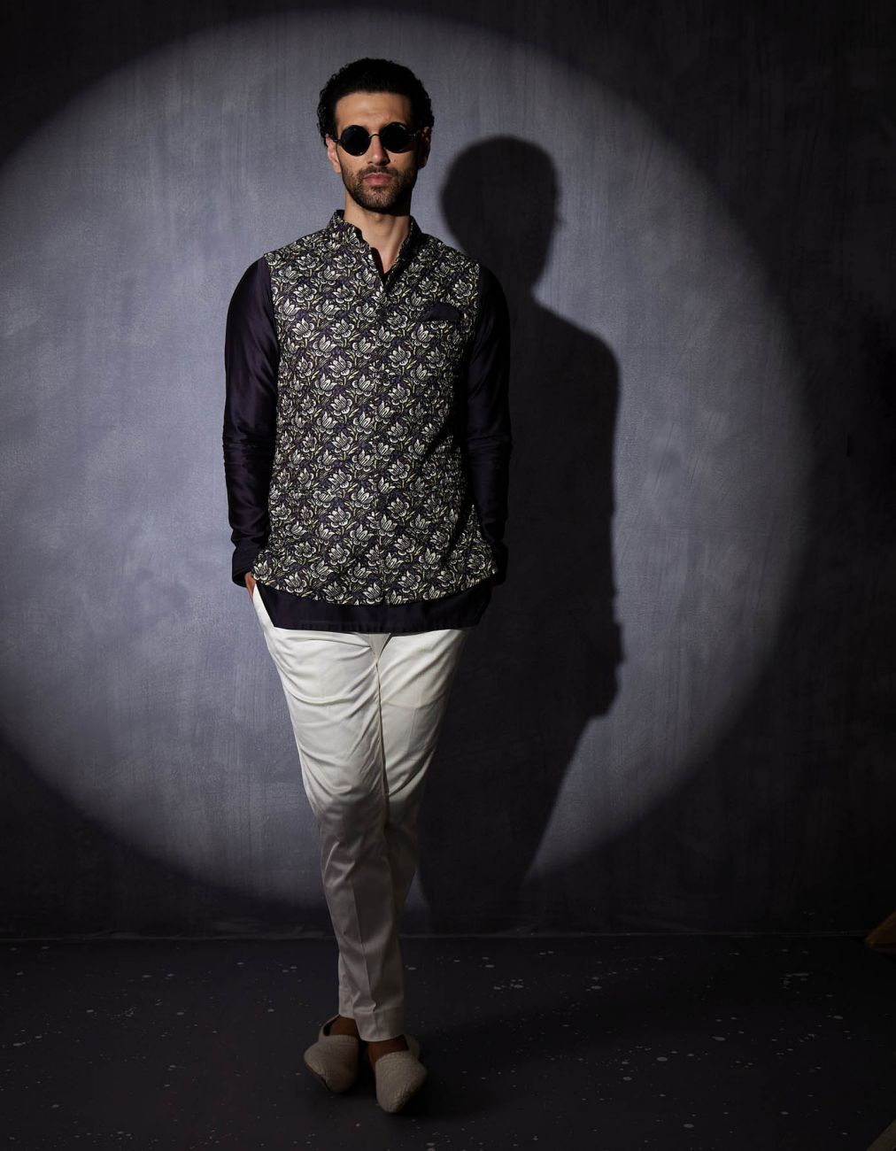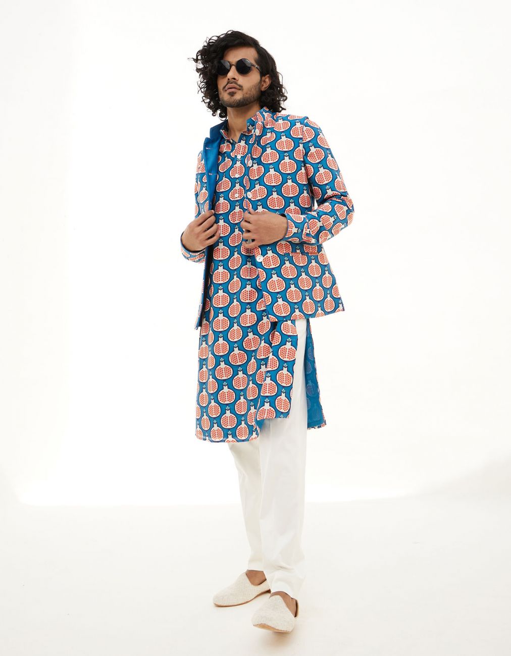 Ocean Blue Tropikal Reversibe Nehru Jacket