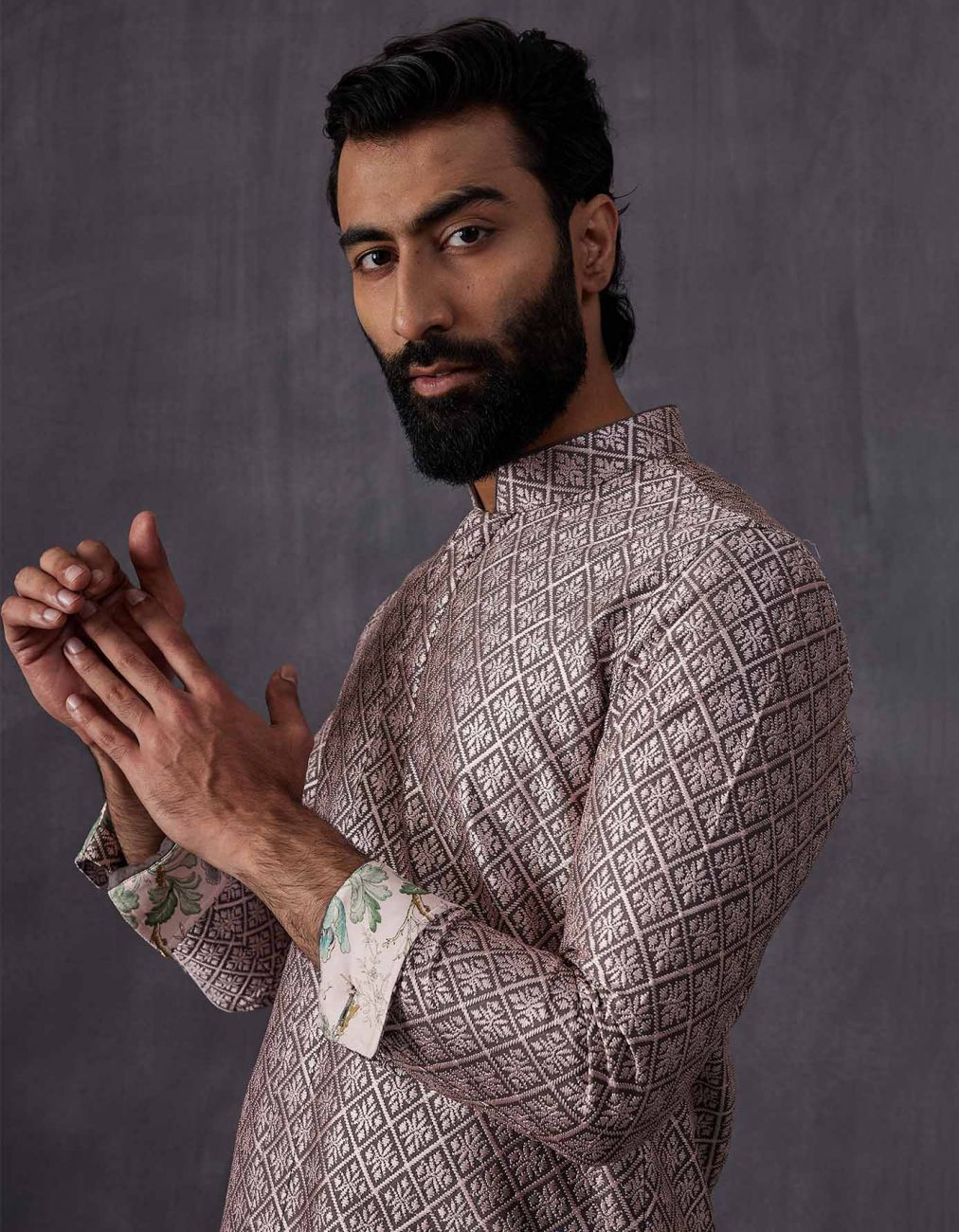 Grey-Pink Kairos 3.0 Front Open Kurta Full Set
