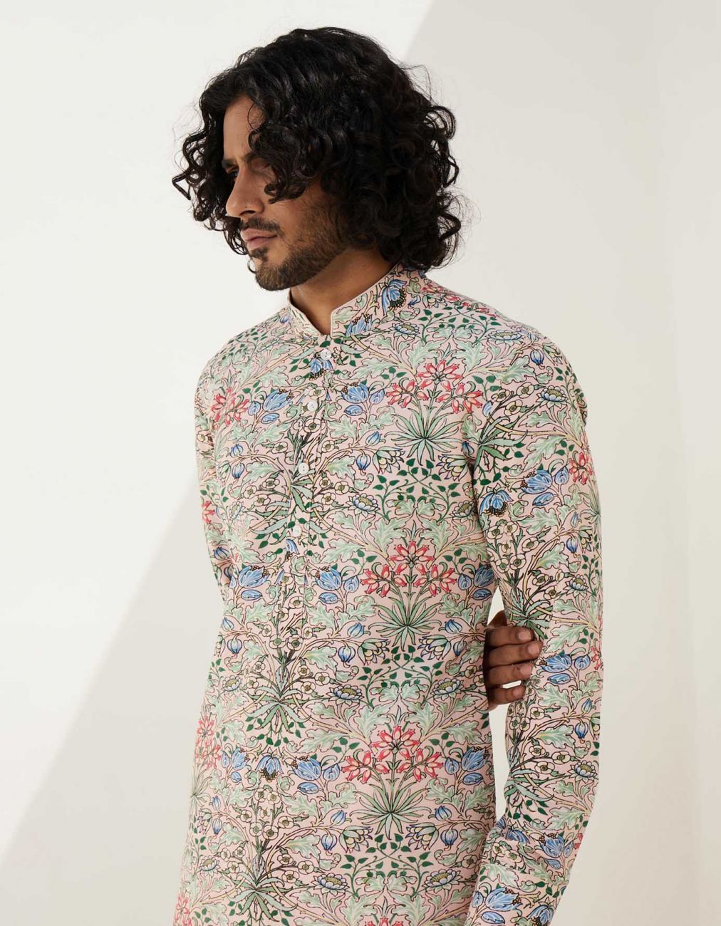 Powder Pink Chanderi Silk Tropikal Kurta With Churidar