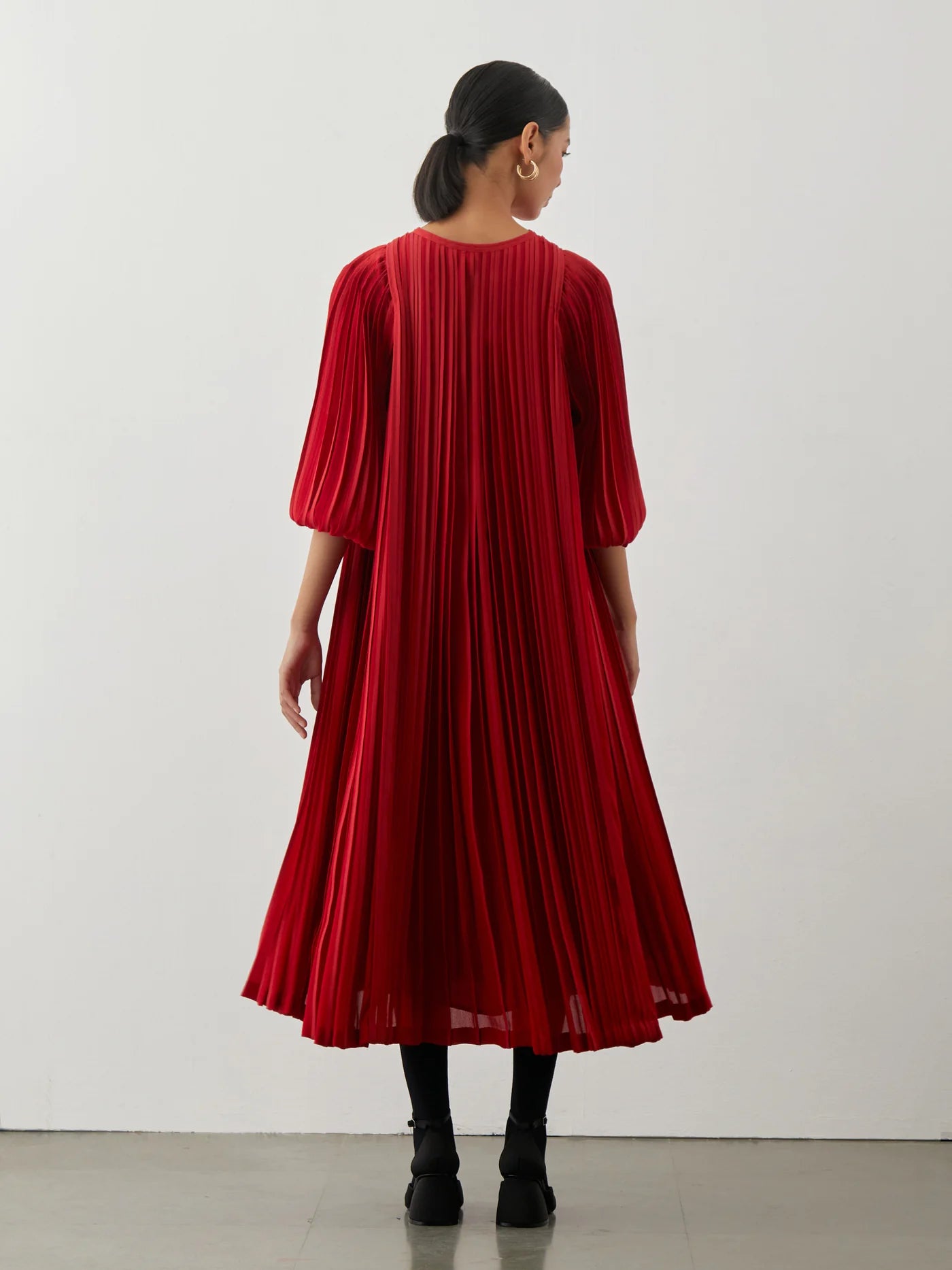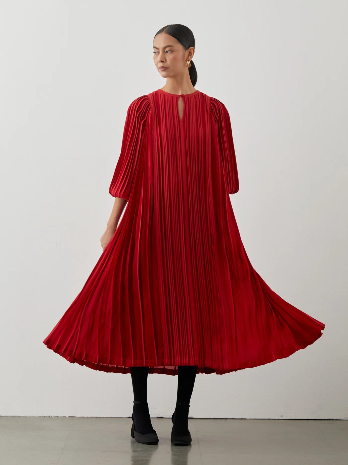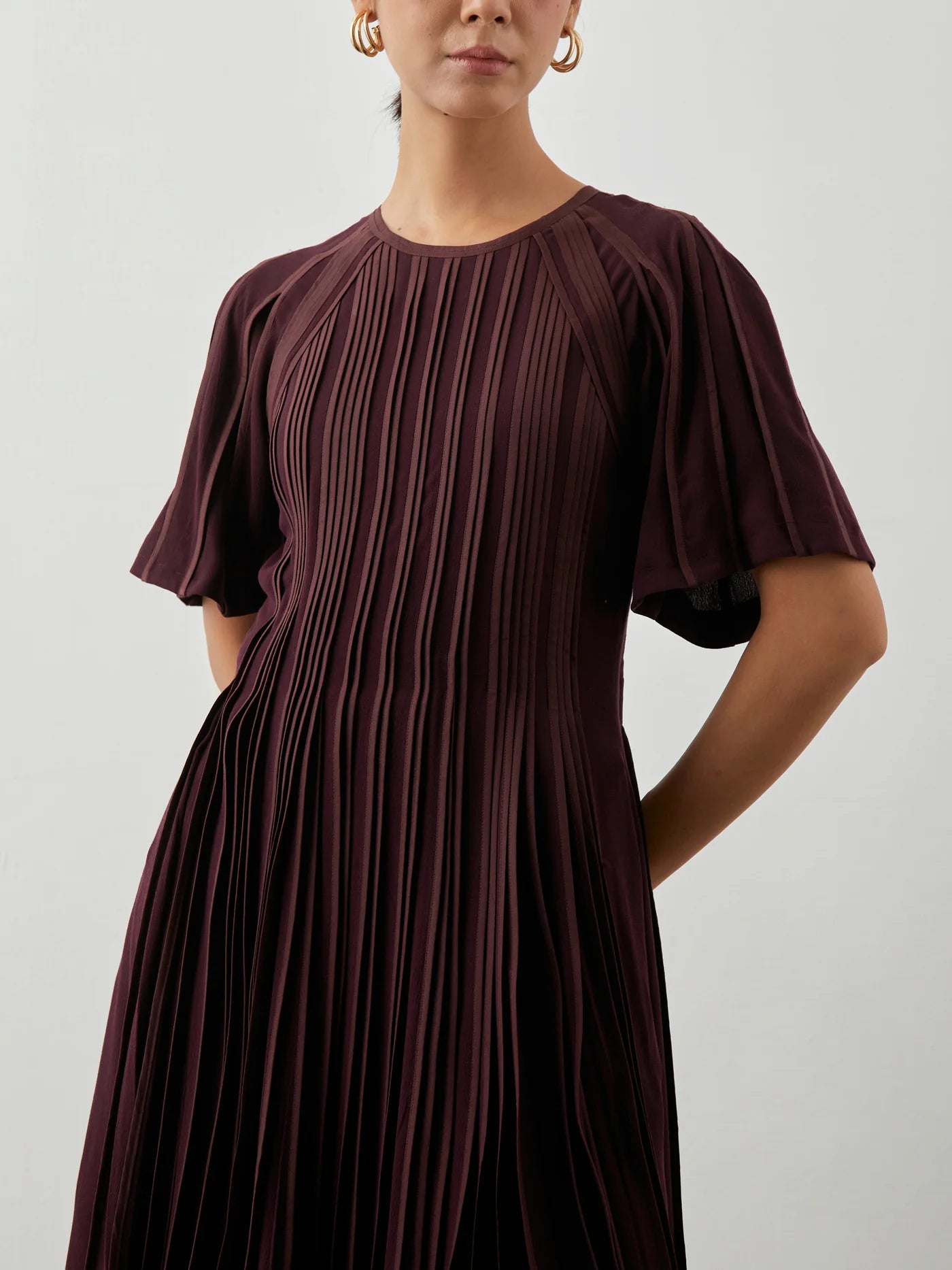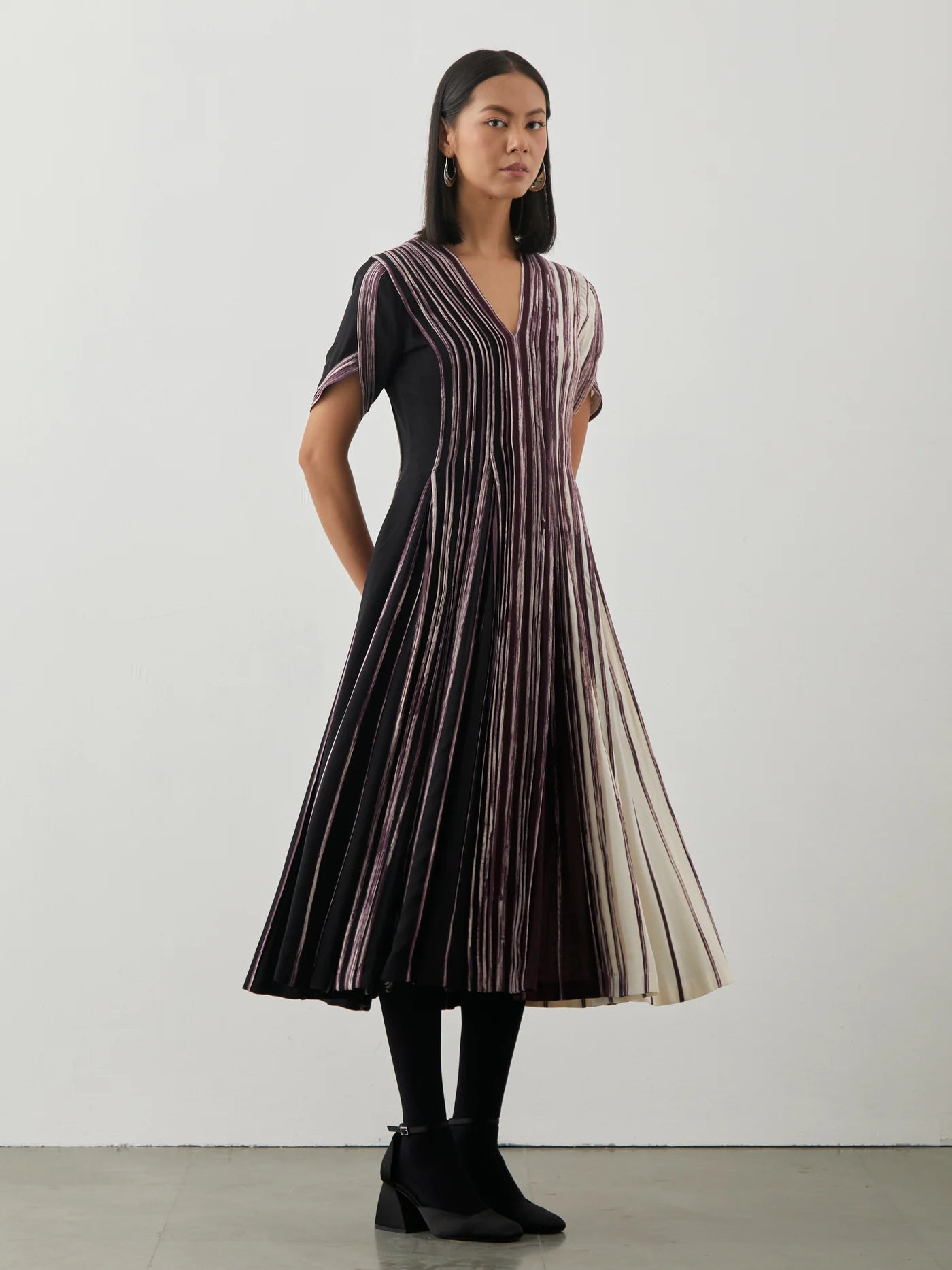 Godet pleated midi dress