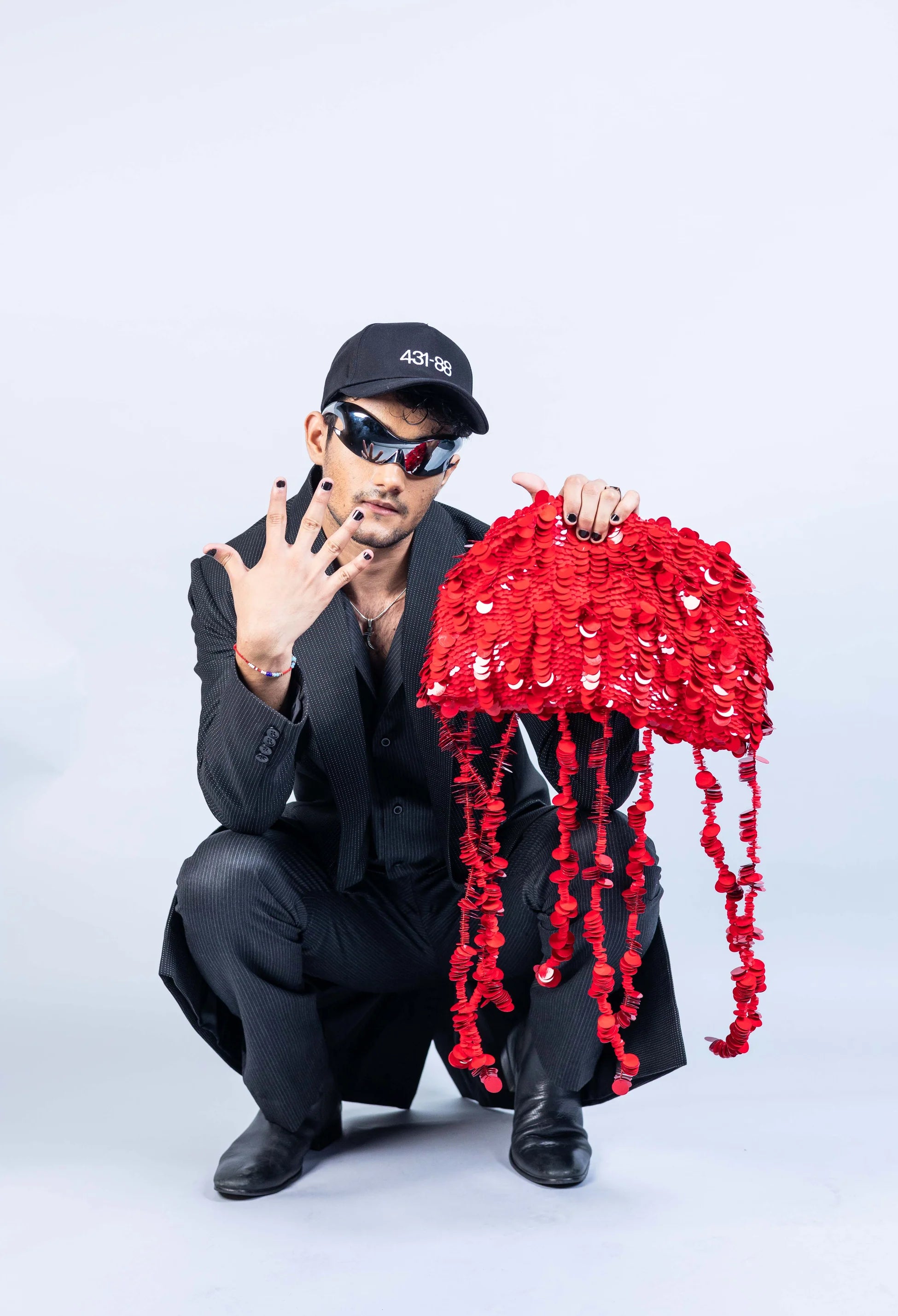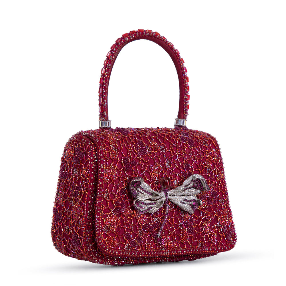 Wazka Mini Trapezium with Handle Clutch Ruby Red