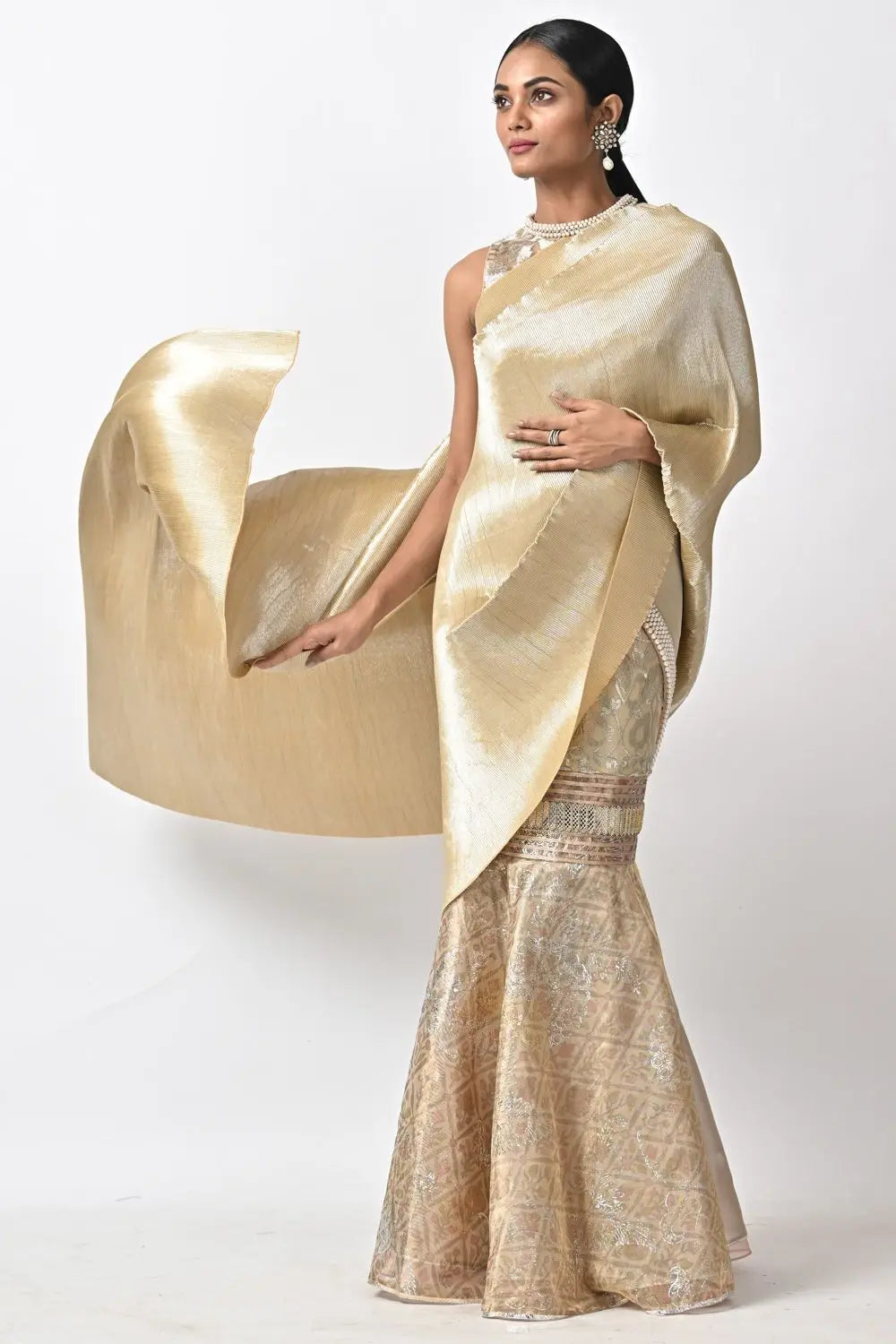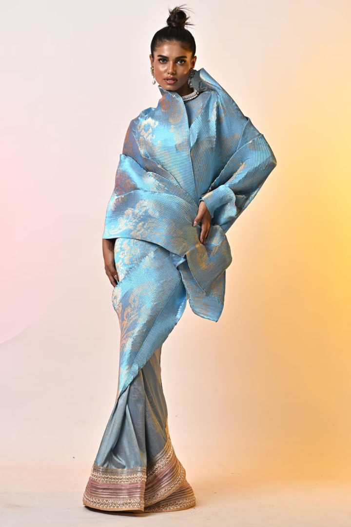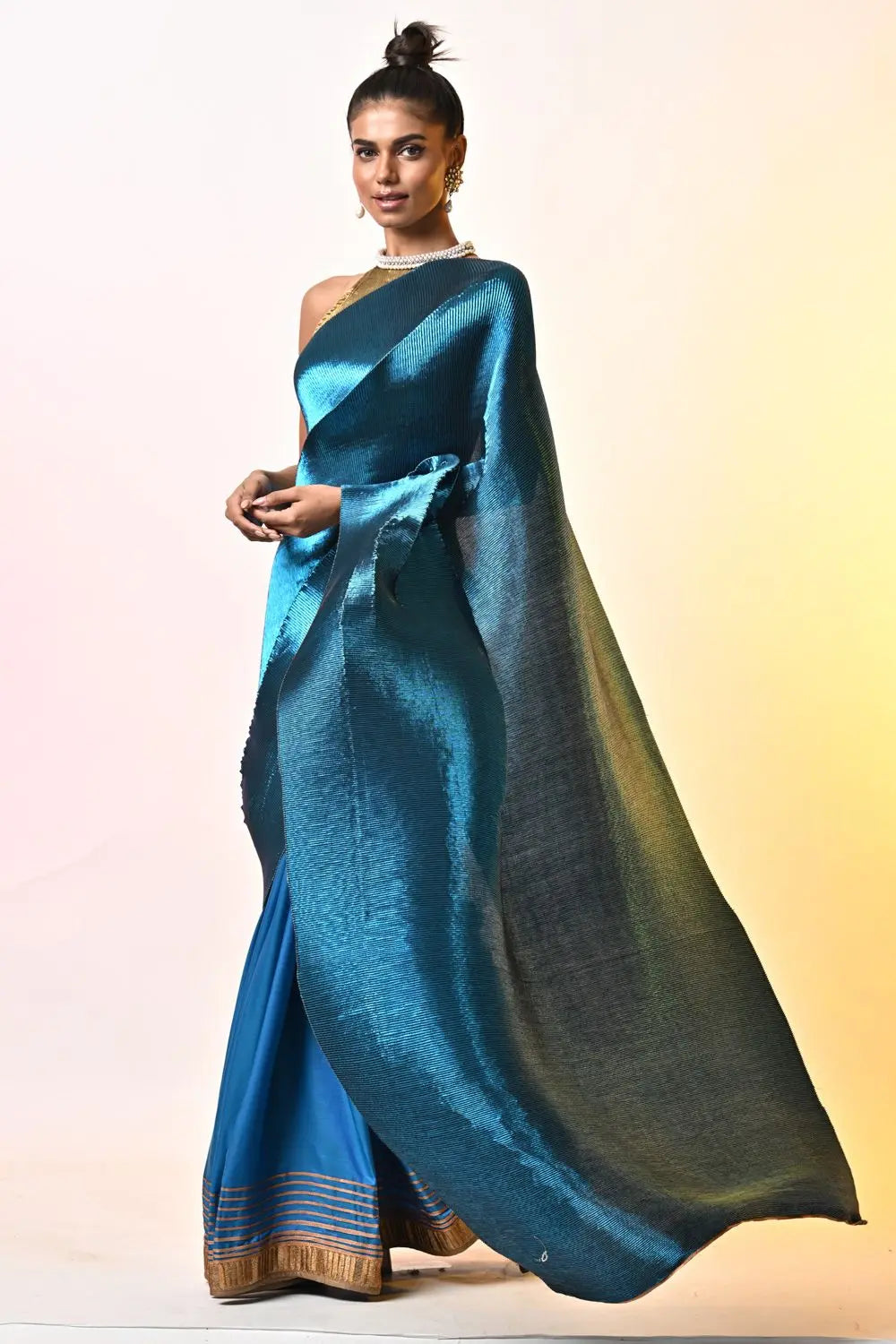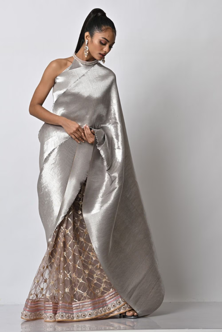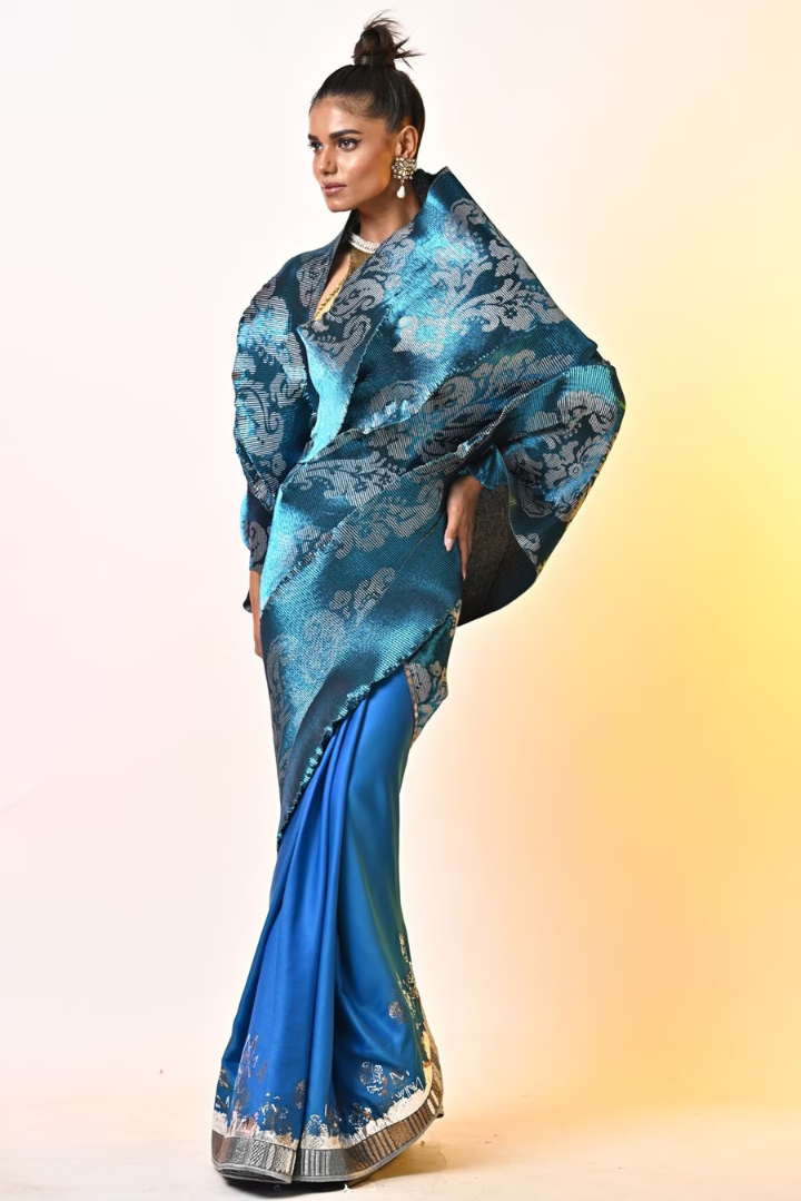 Black Chiffon & Organza Draped Ruffle Saree Set