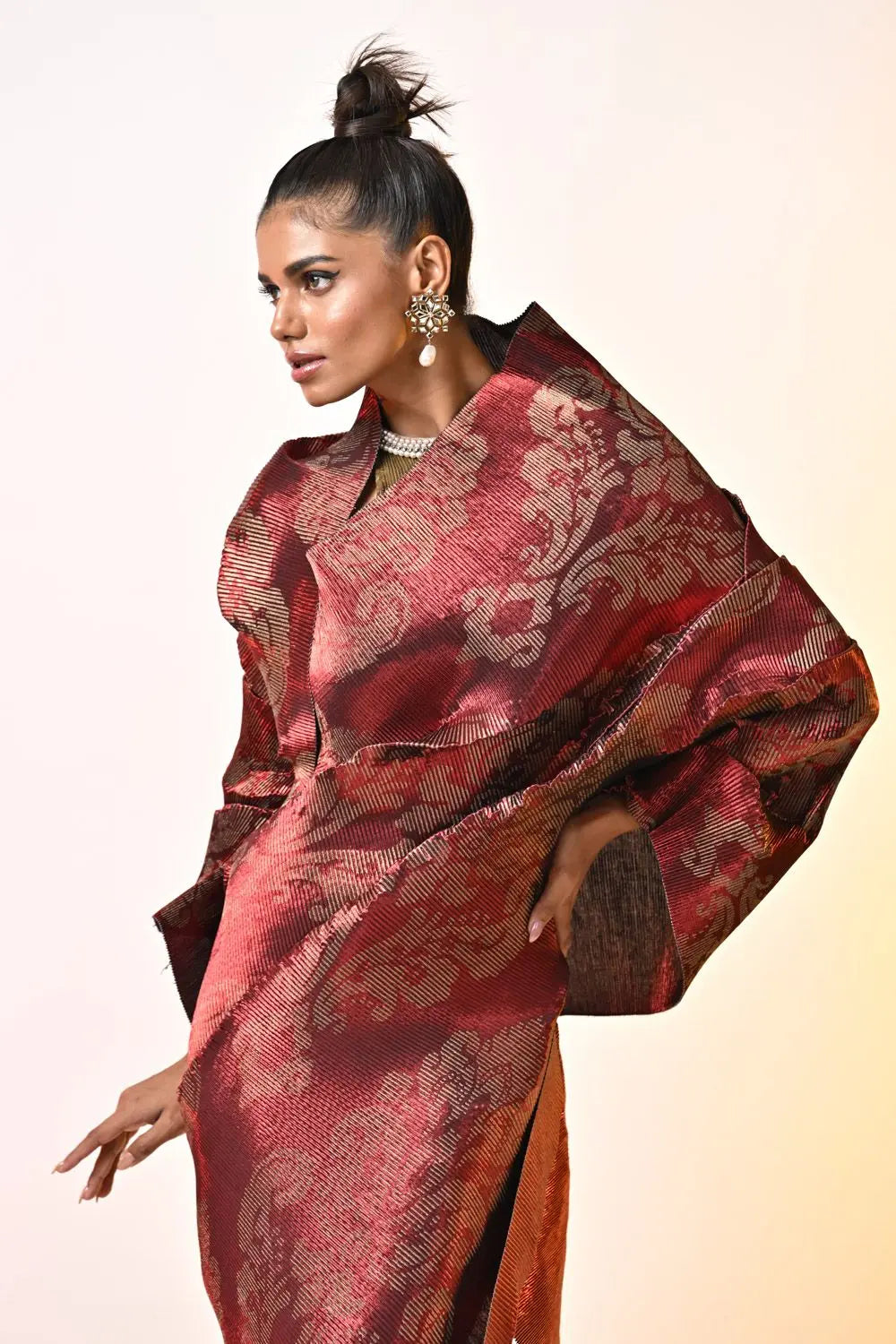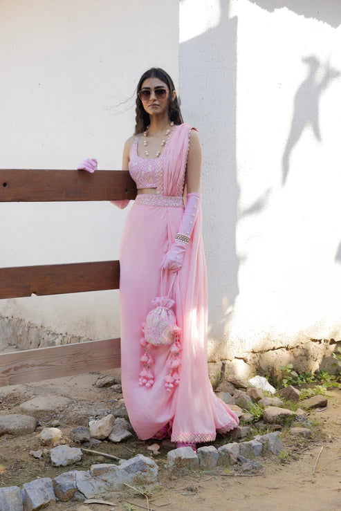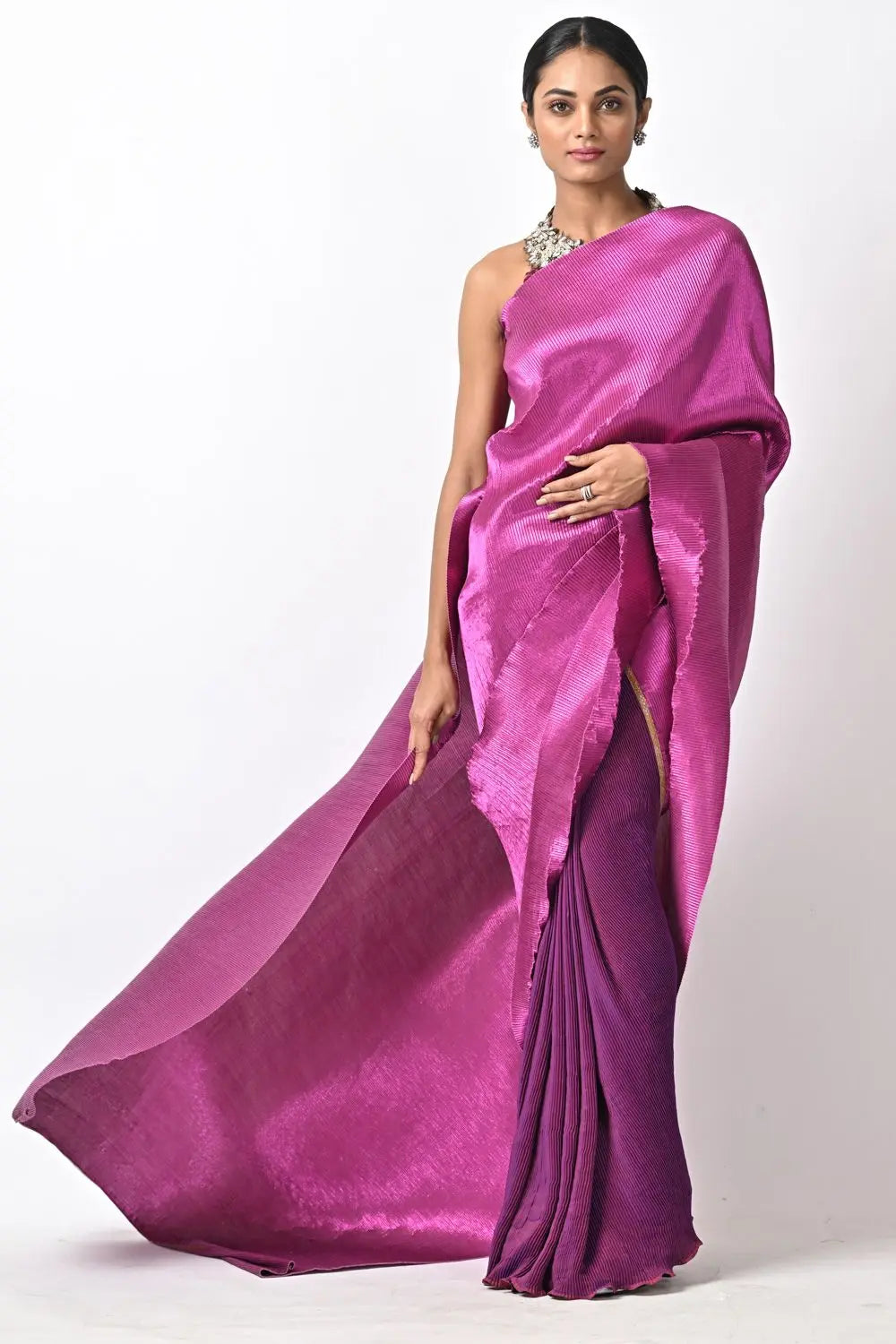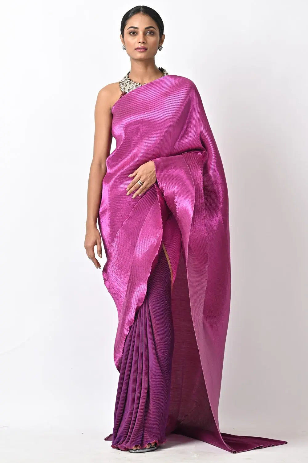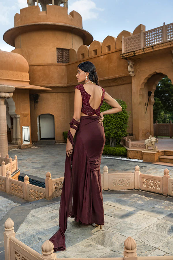 Retro Love Plum Chiffon Pre-Draped Saree Set
