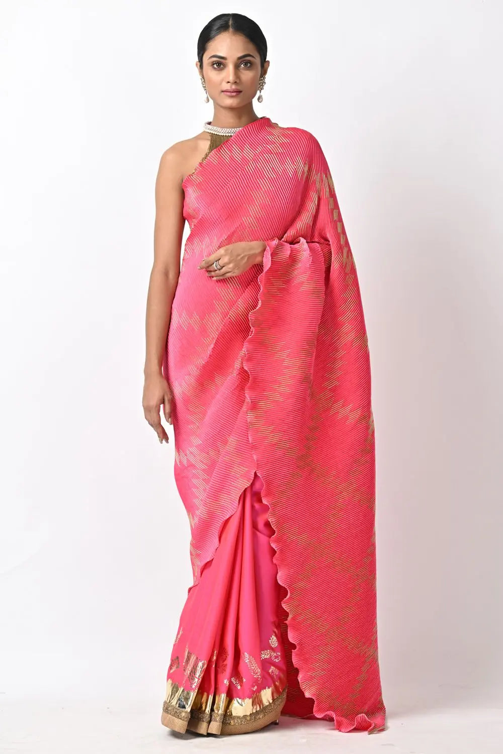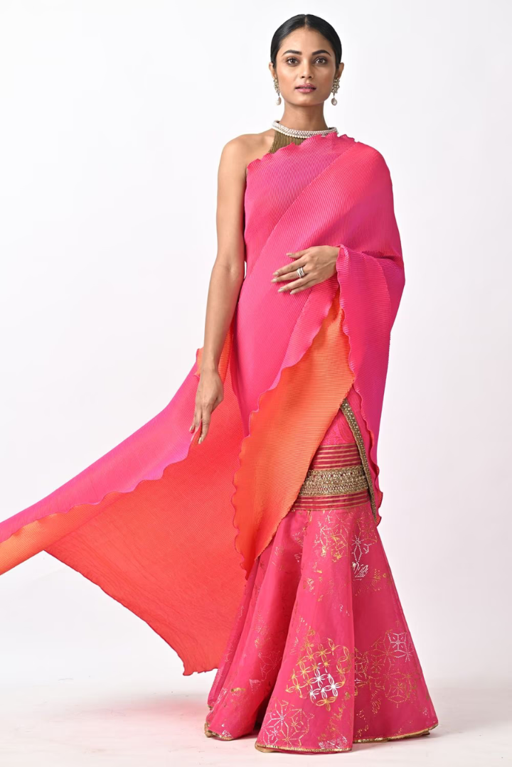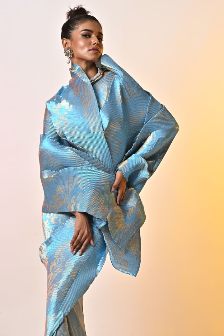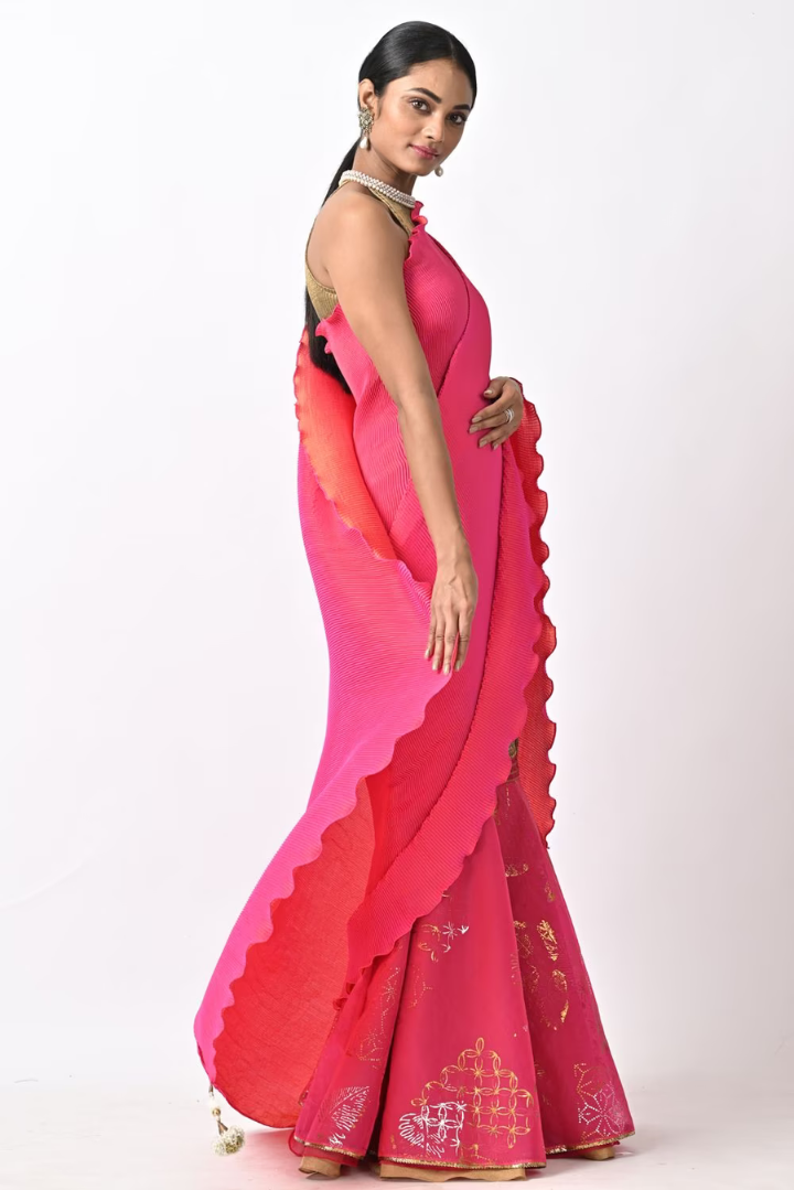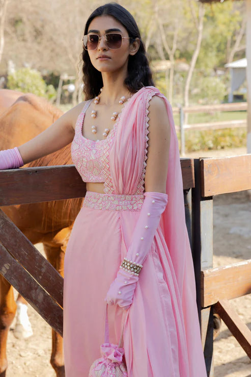 Retro Love Plum Chiffon Pre-Draped Saree Set