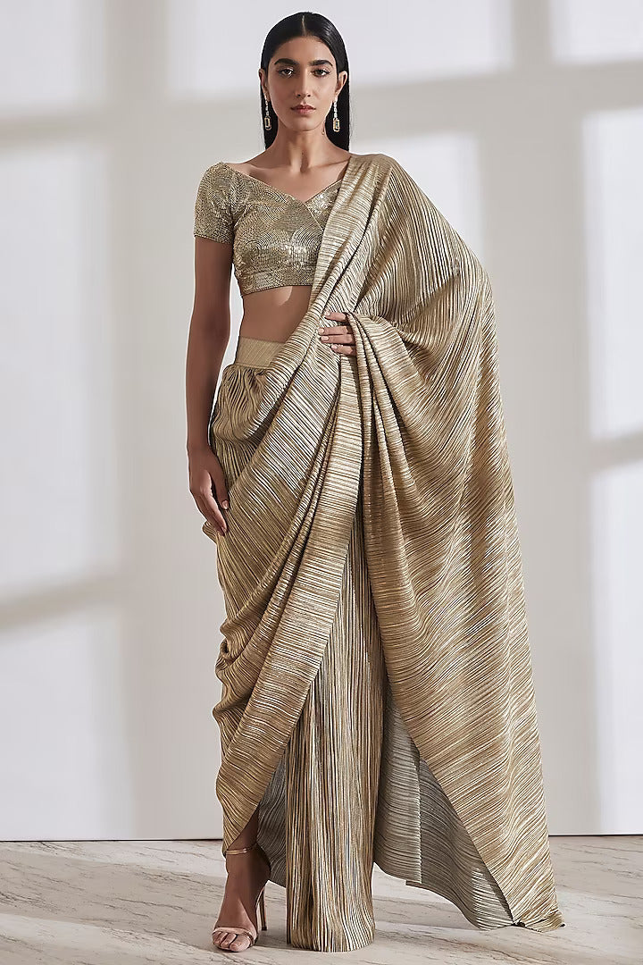 Galaxy Blouse with Pre-draped Ruffle Saree