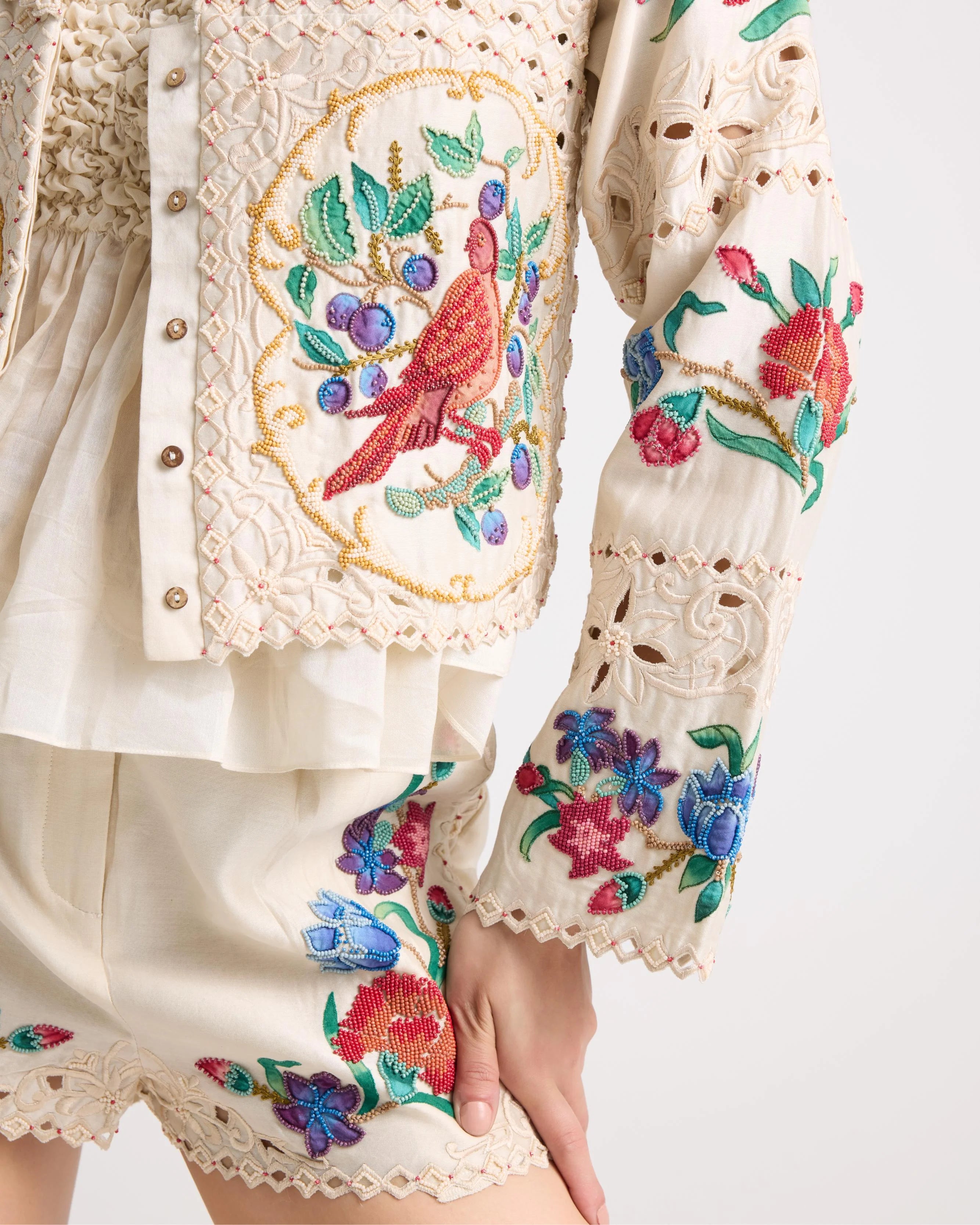 Ivory Applique And Beadwork Short Jacket