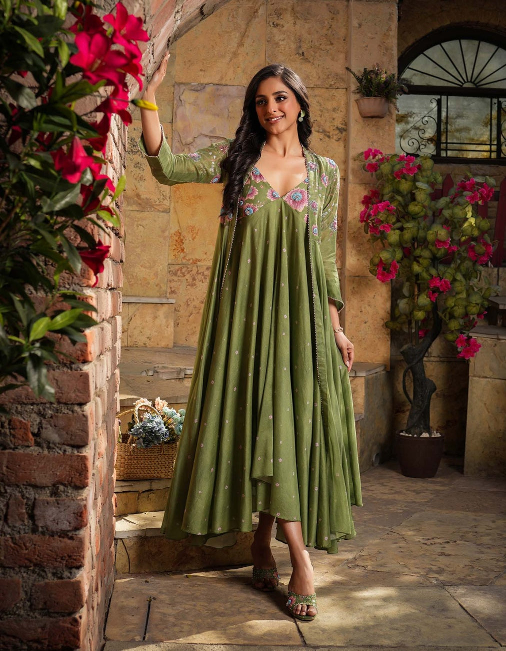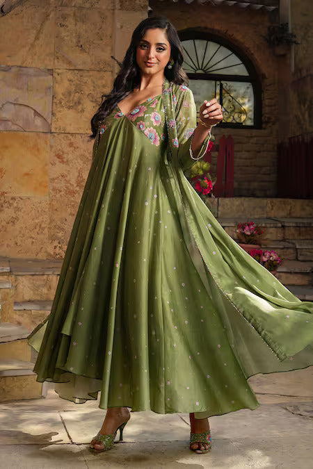 Dark Green Mughal Jacket Set