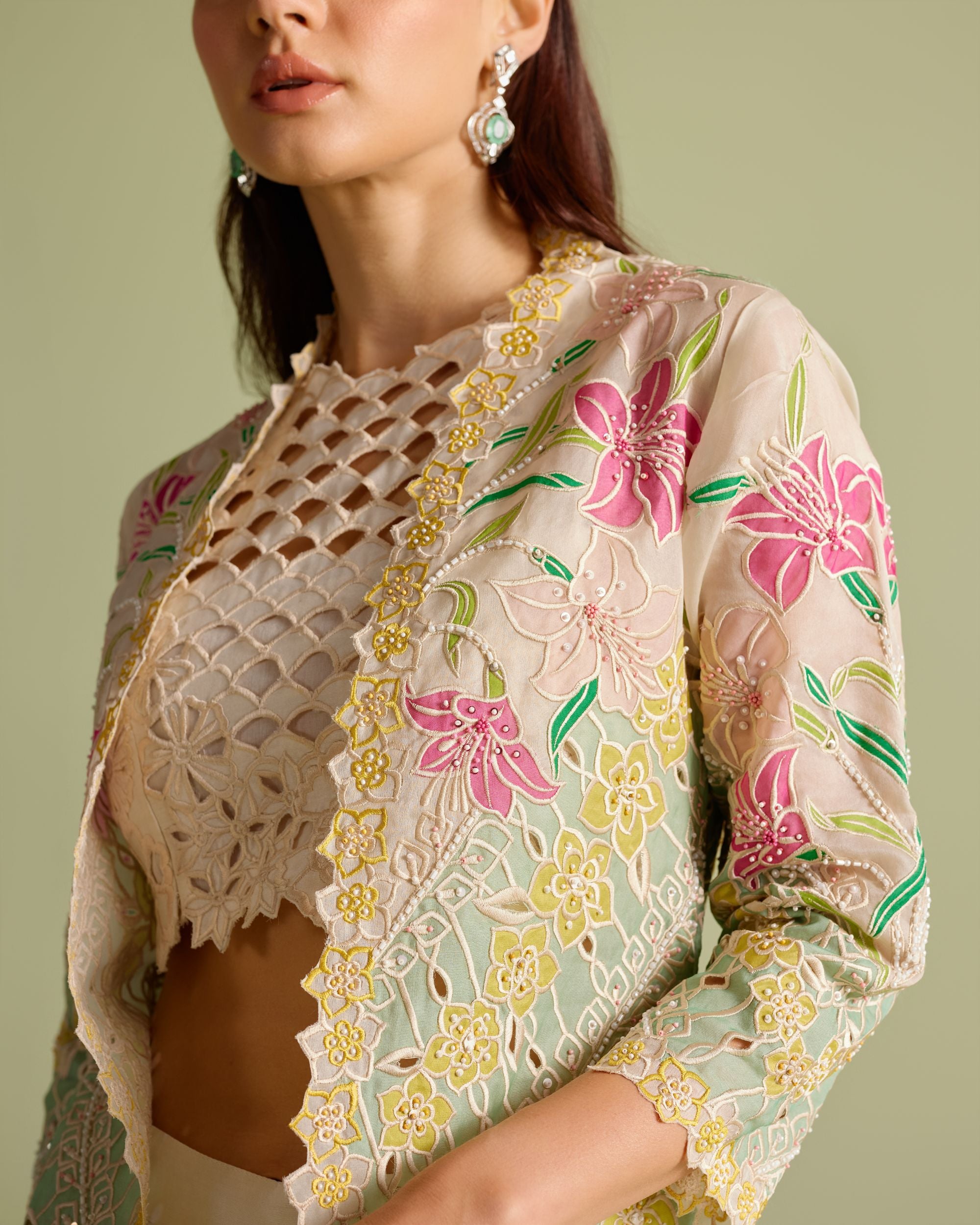Lime Green Cutwork And Beadwork Jacket