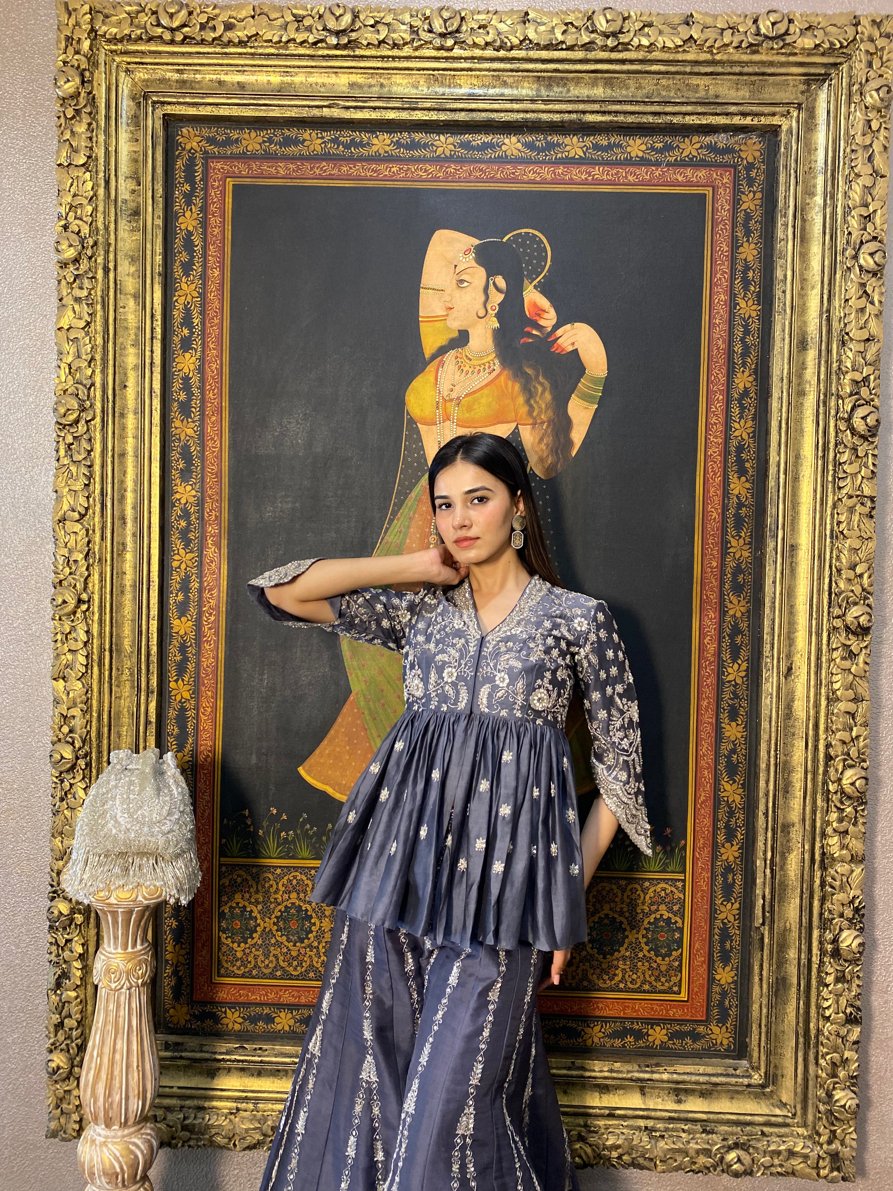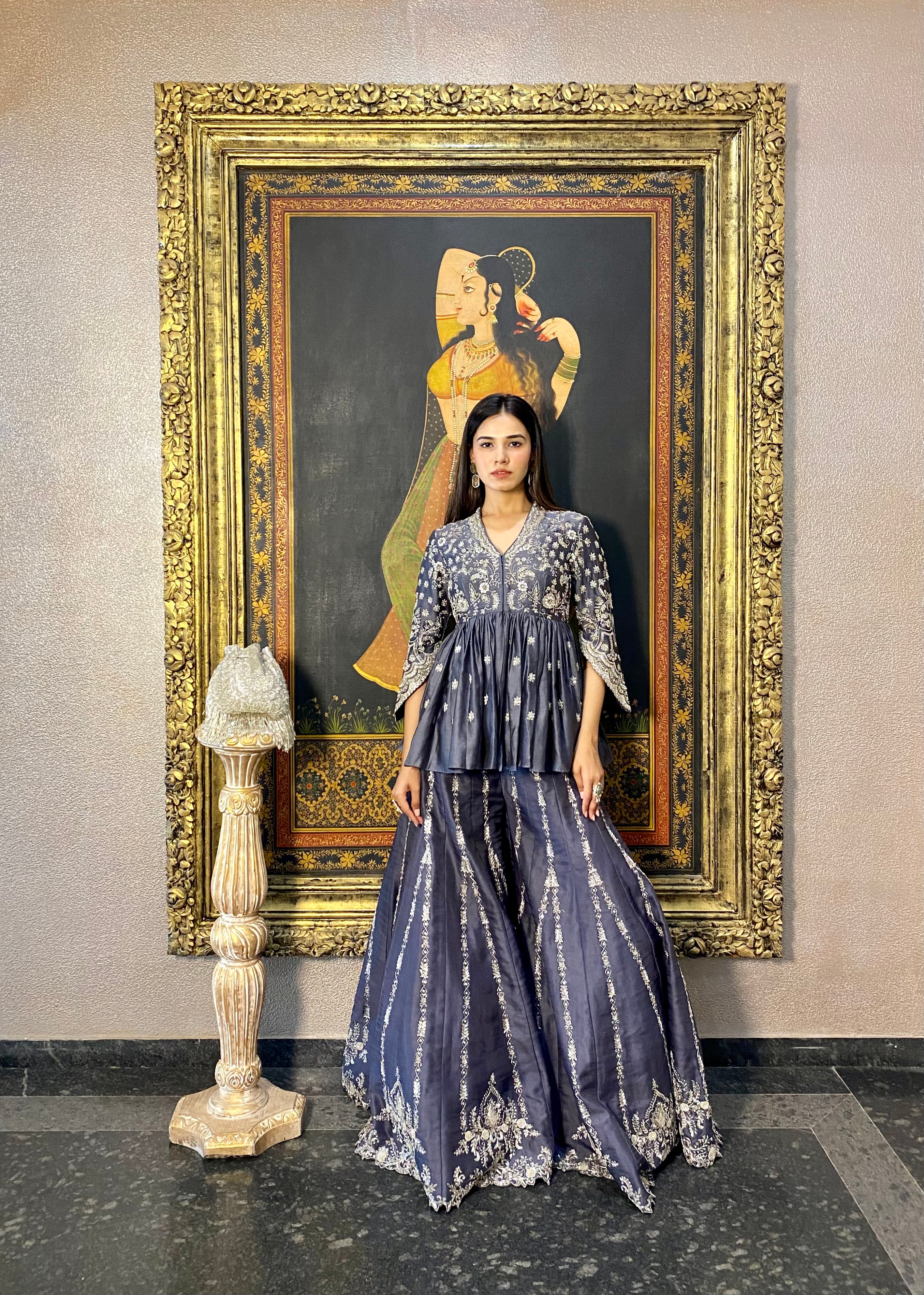 EMBROIDERED PEPLUM WITH SHARARA AND DUPATTA