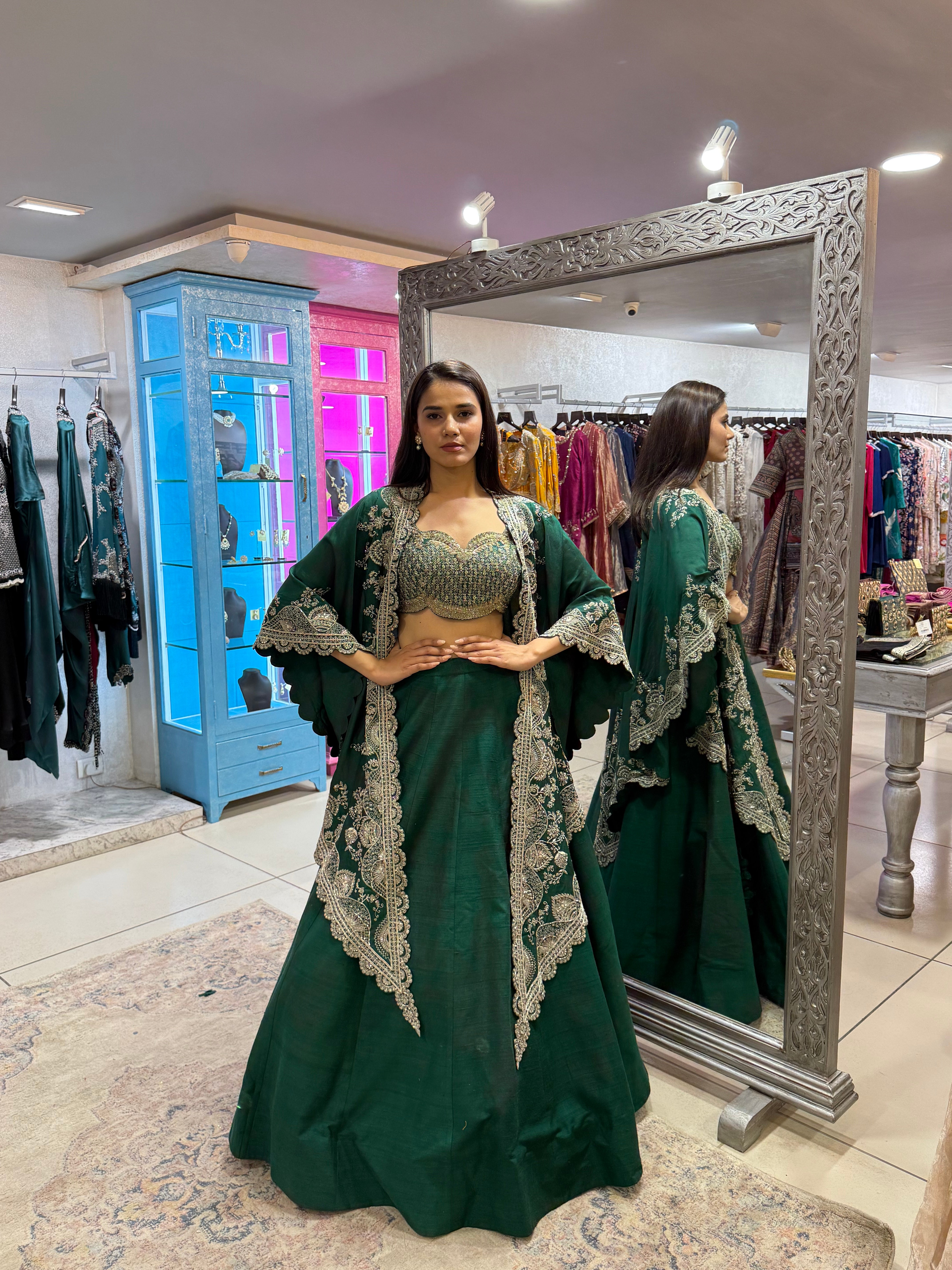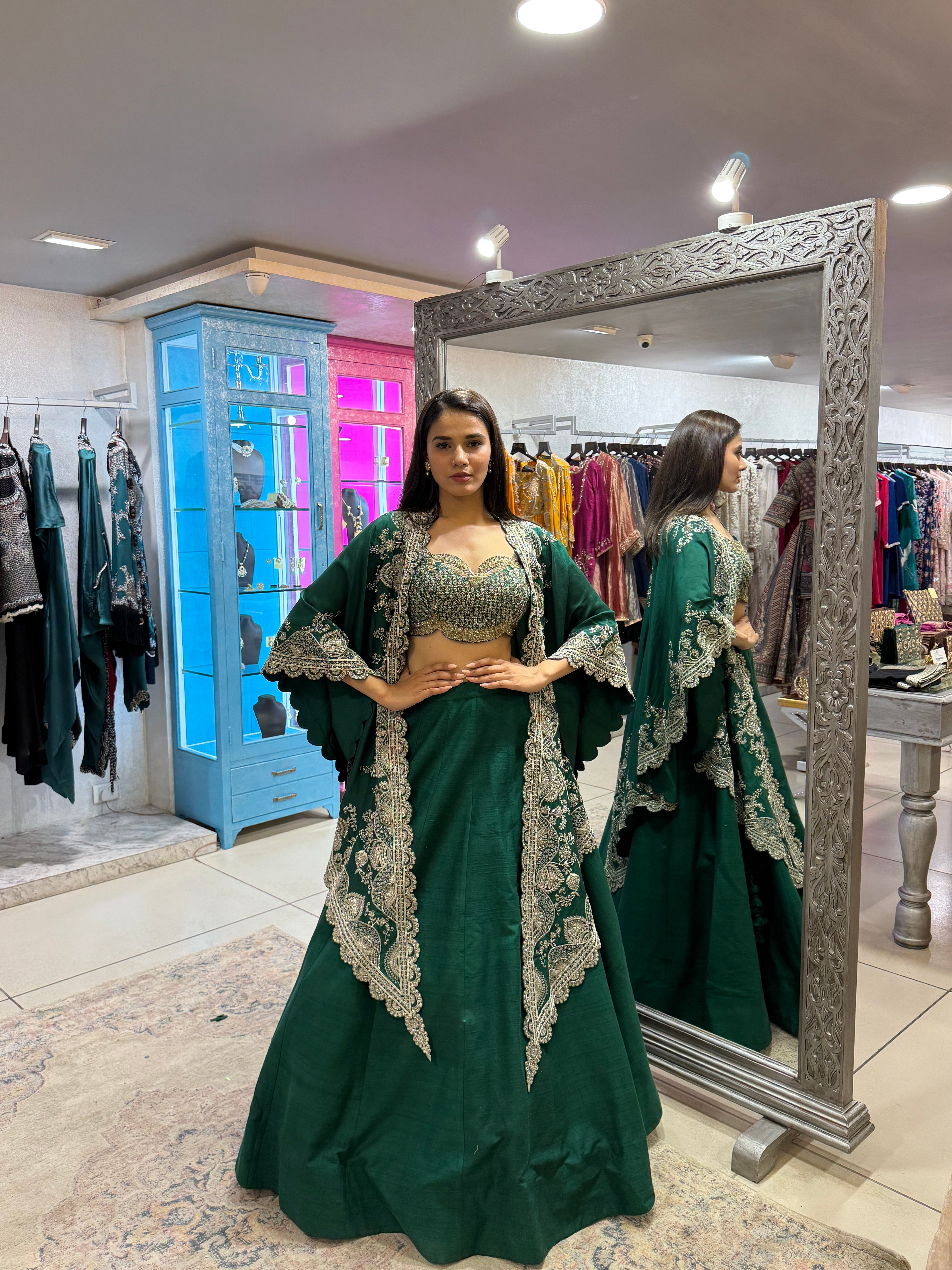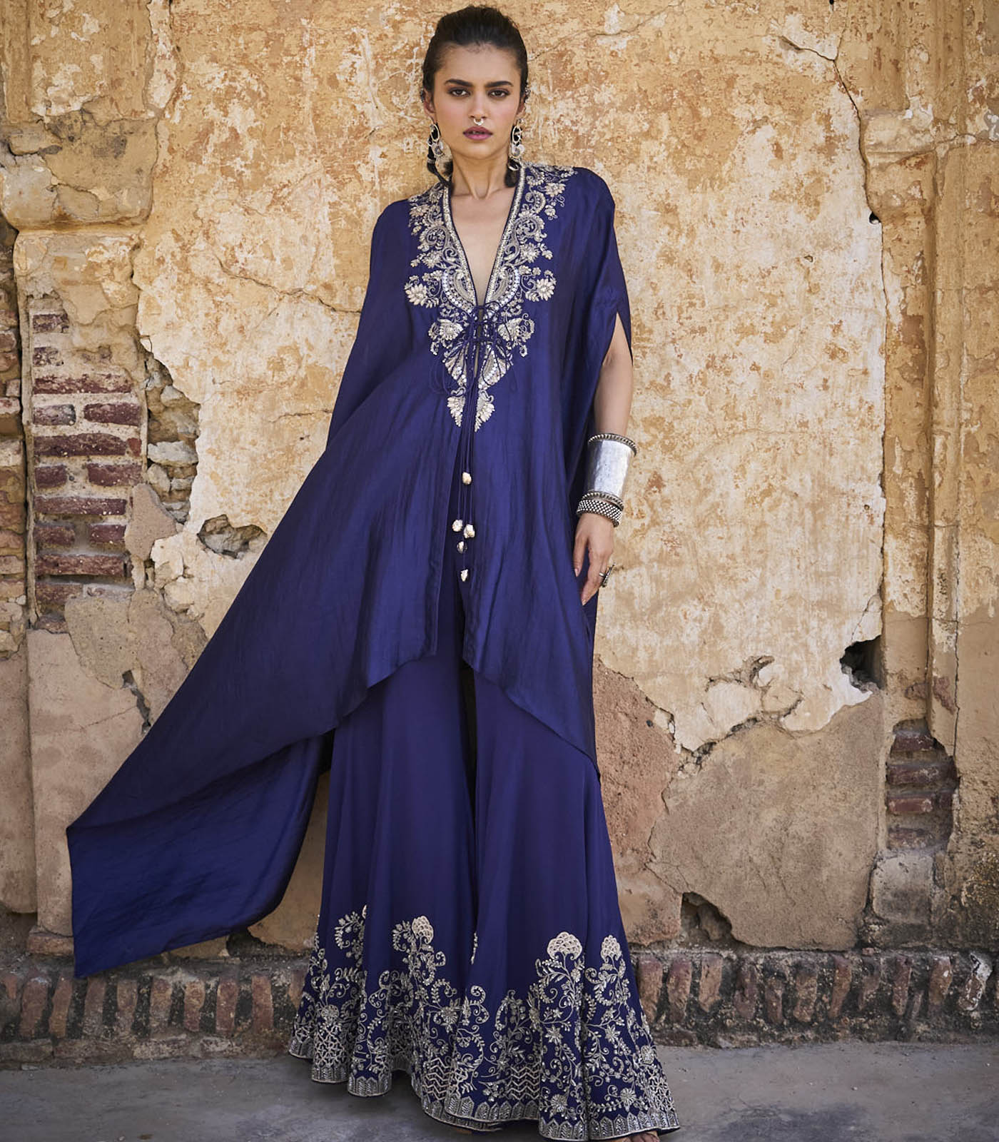 PRE DAPE SAREE WITH EMROIDERED CAPE AND BLOUSE