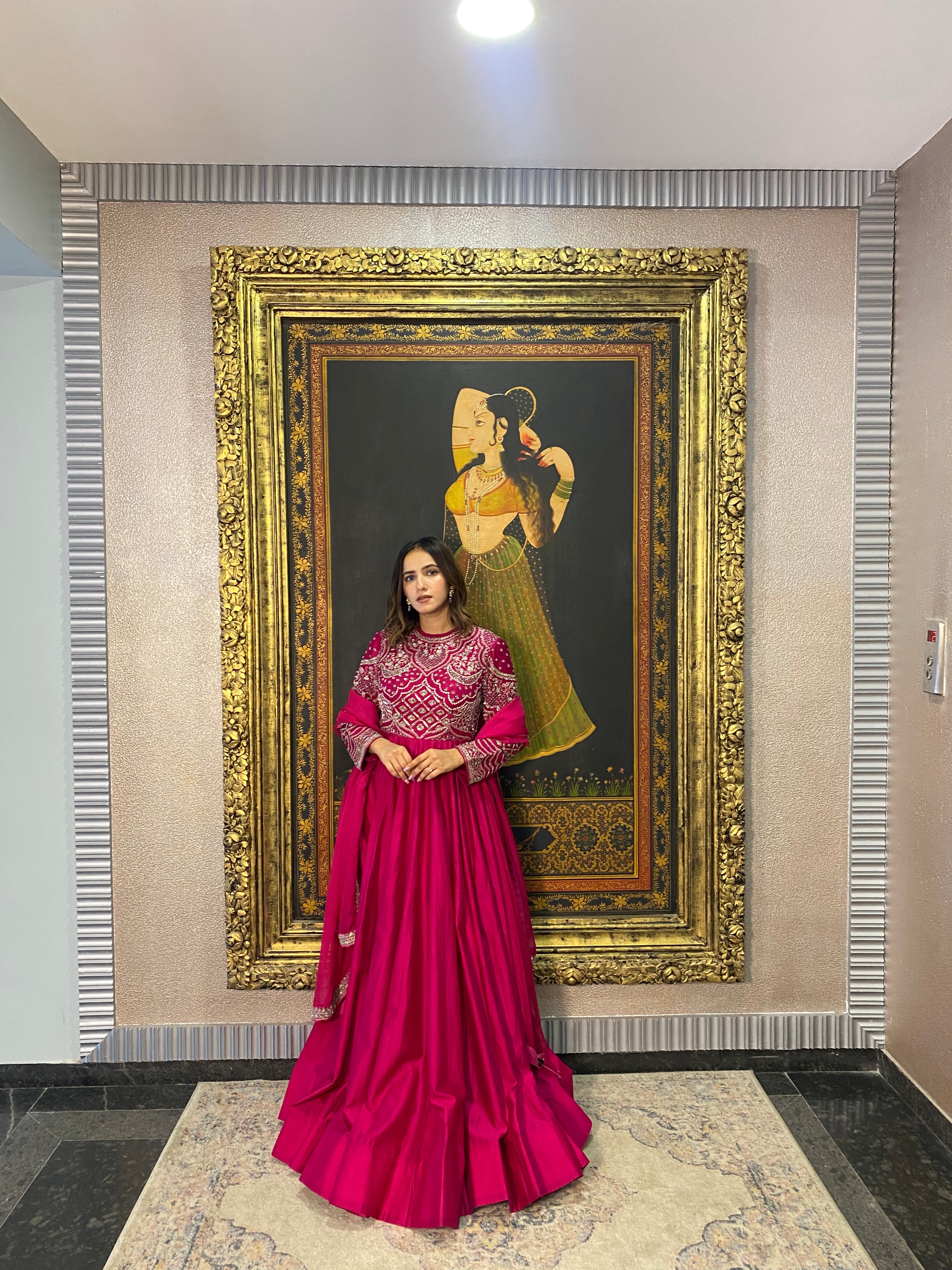 SILK PLAIN ANARKLAI WITH EMROIDERED DUAPTTA AND BELT
