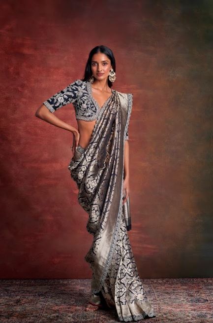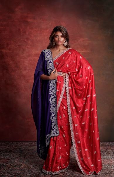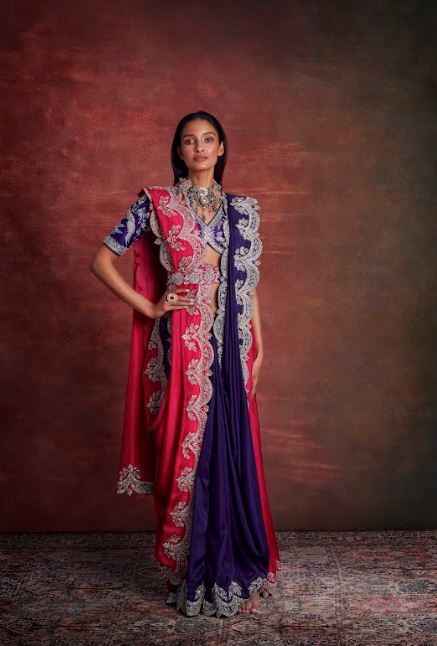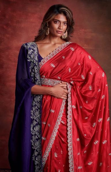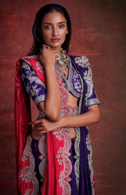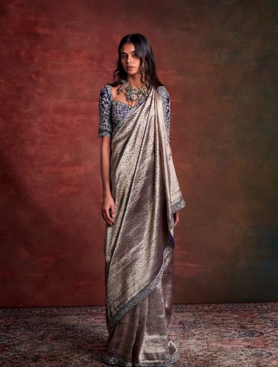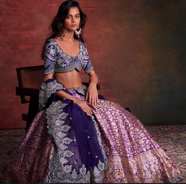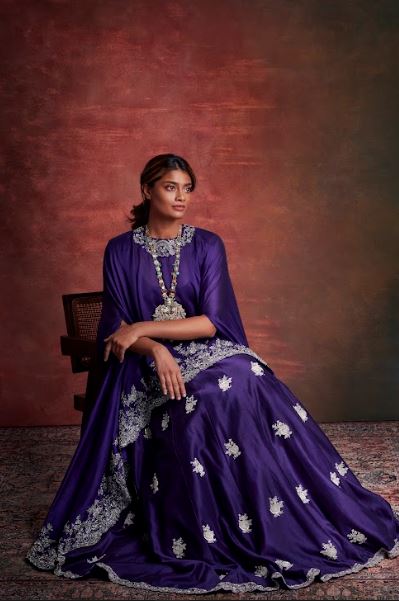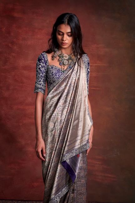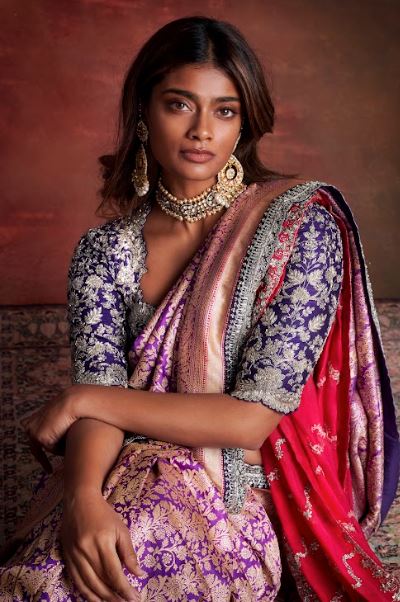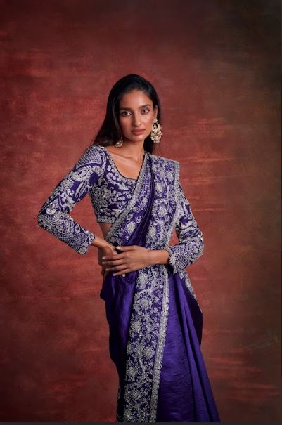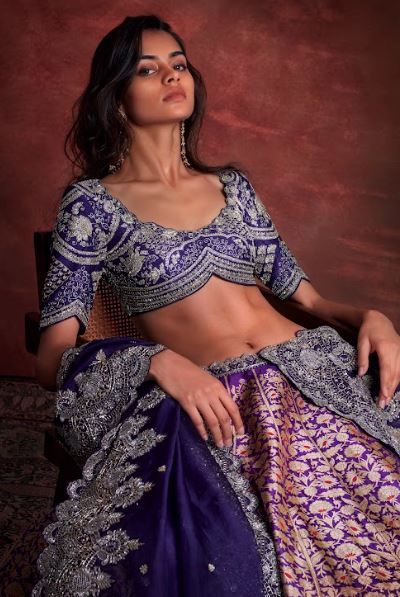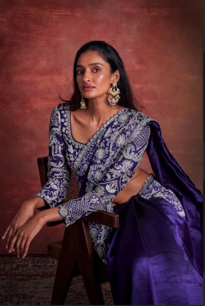Purple Slik Banarasi Saree With Embroidered Blouse