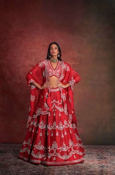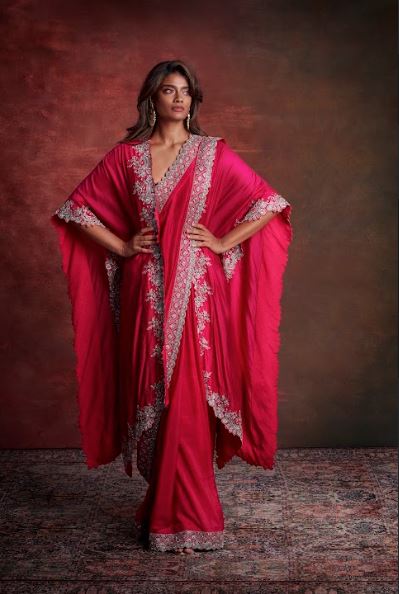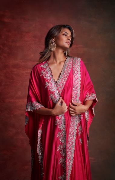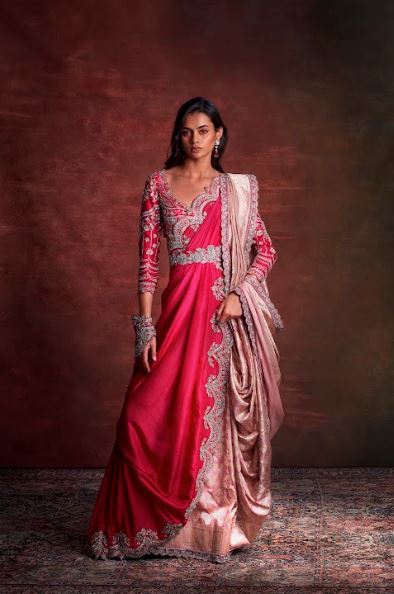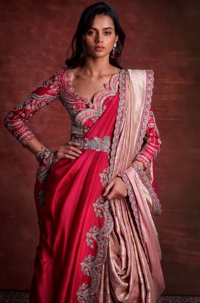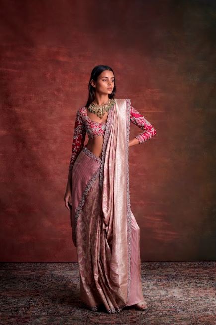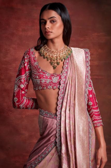 Pink & Peach Banarasi Silk Embroidered Saree Set