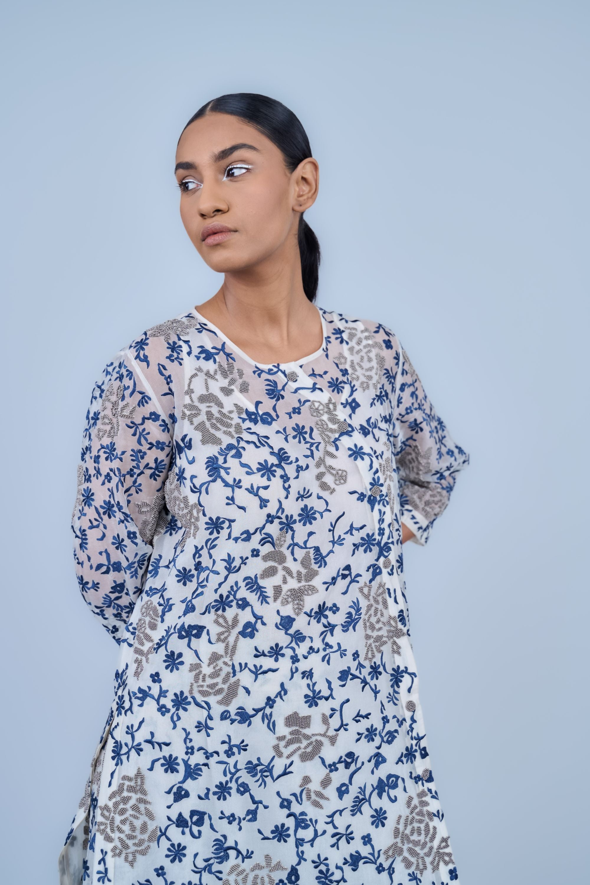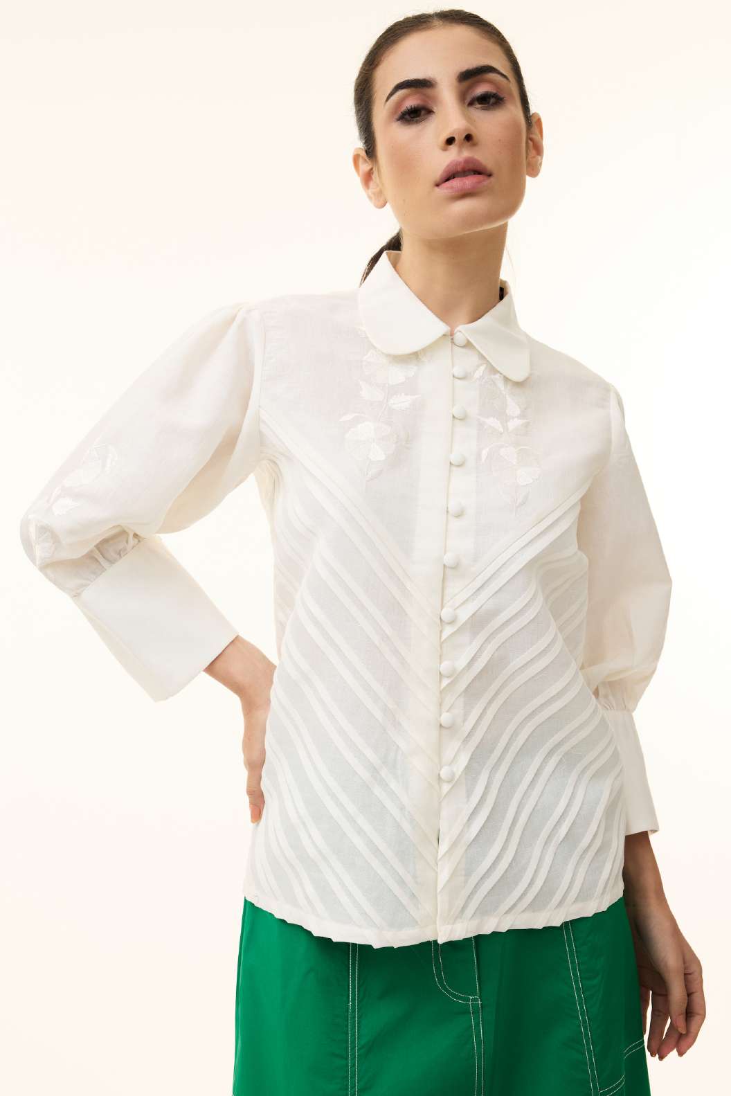 Ecru Spc Slv Silk Organza Skirt