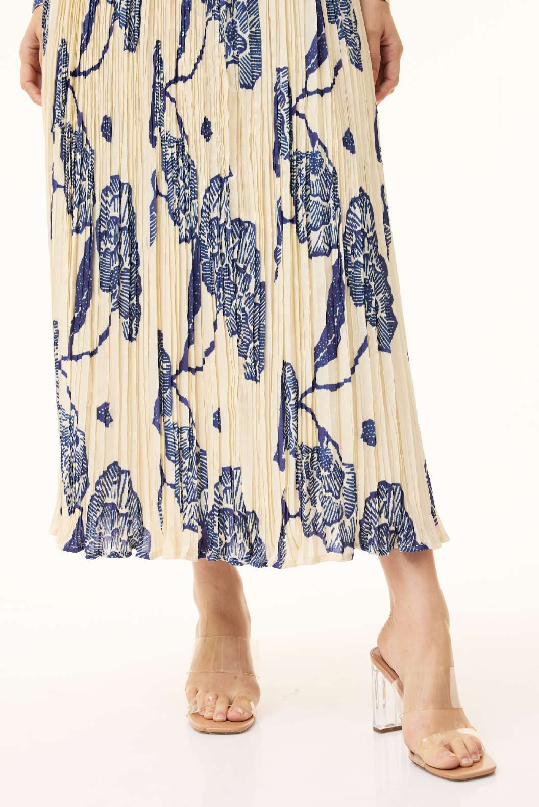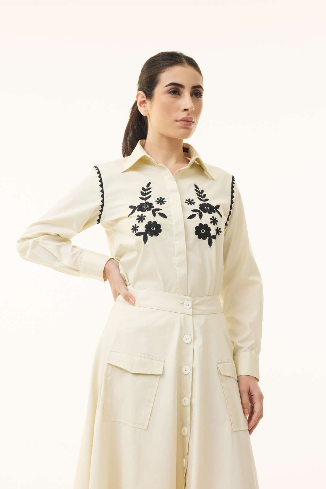 Ivory Floral Mosaic Button Down Skirt