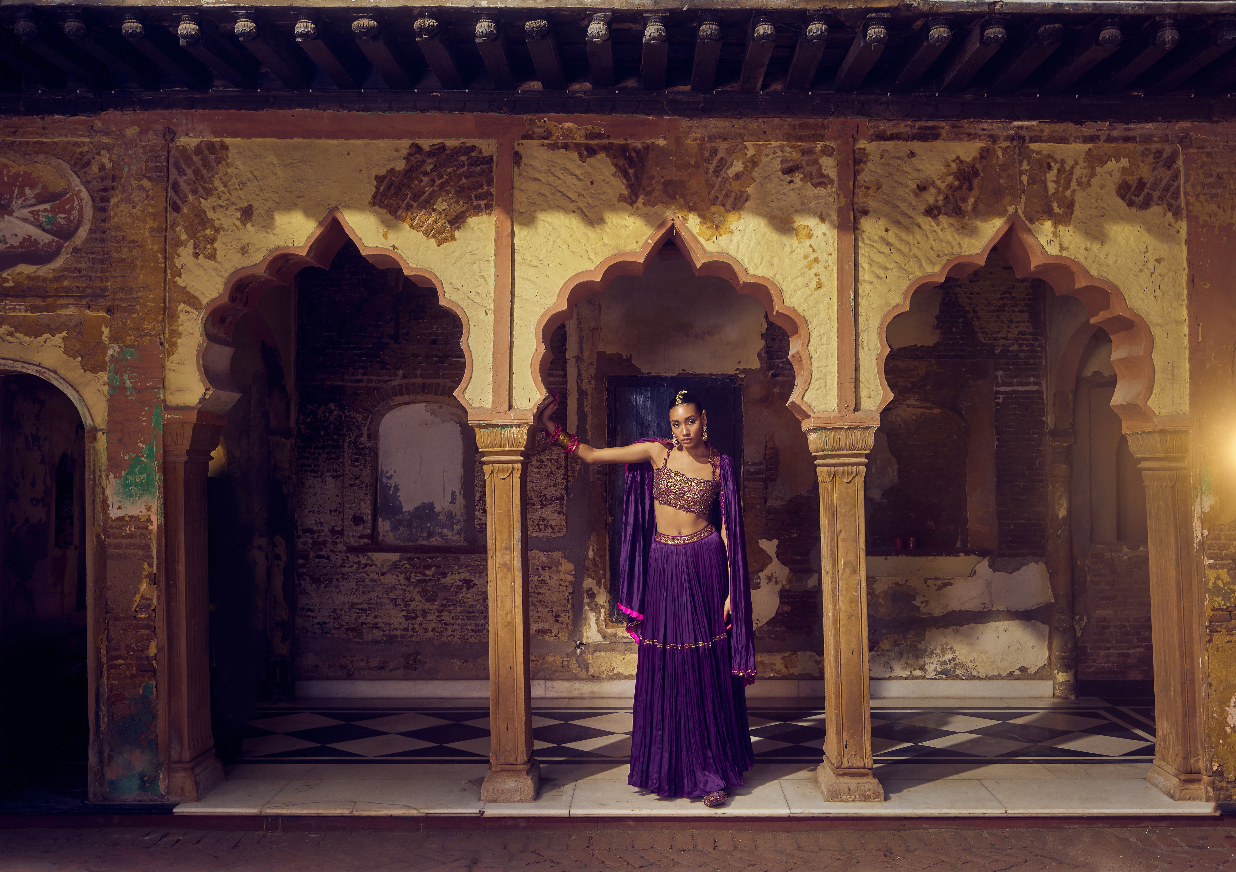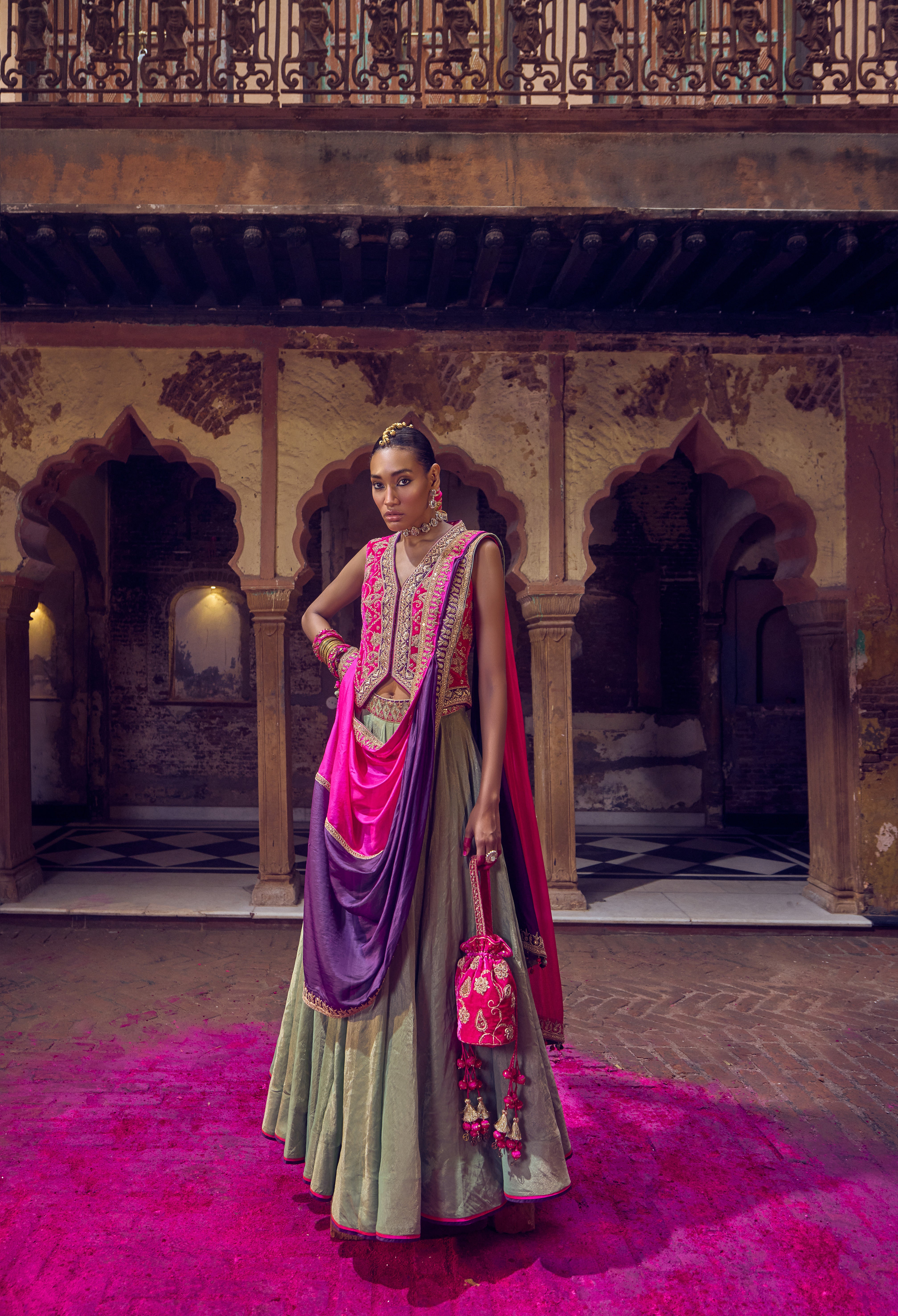 Fuchsia Pink Heavy Cape With Blouse And Skirt