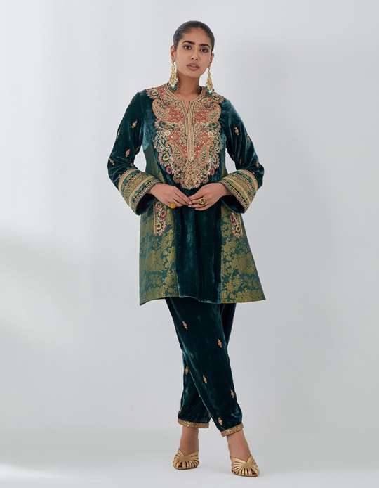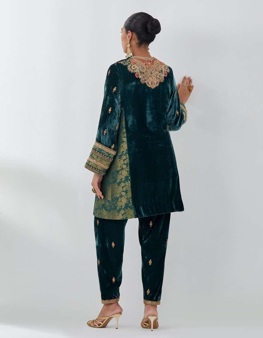 Teal Velvet Short Kurta Salwar & Dupatta