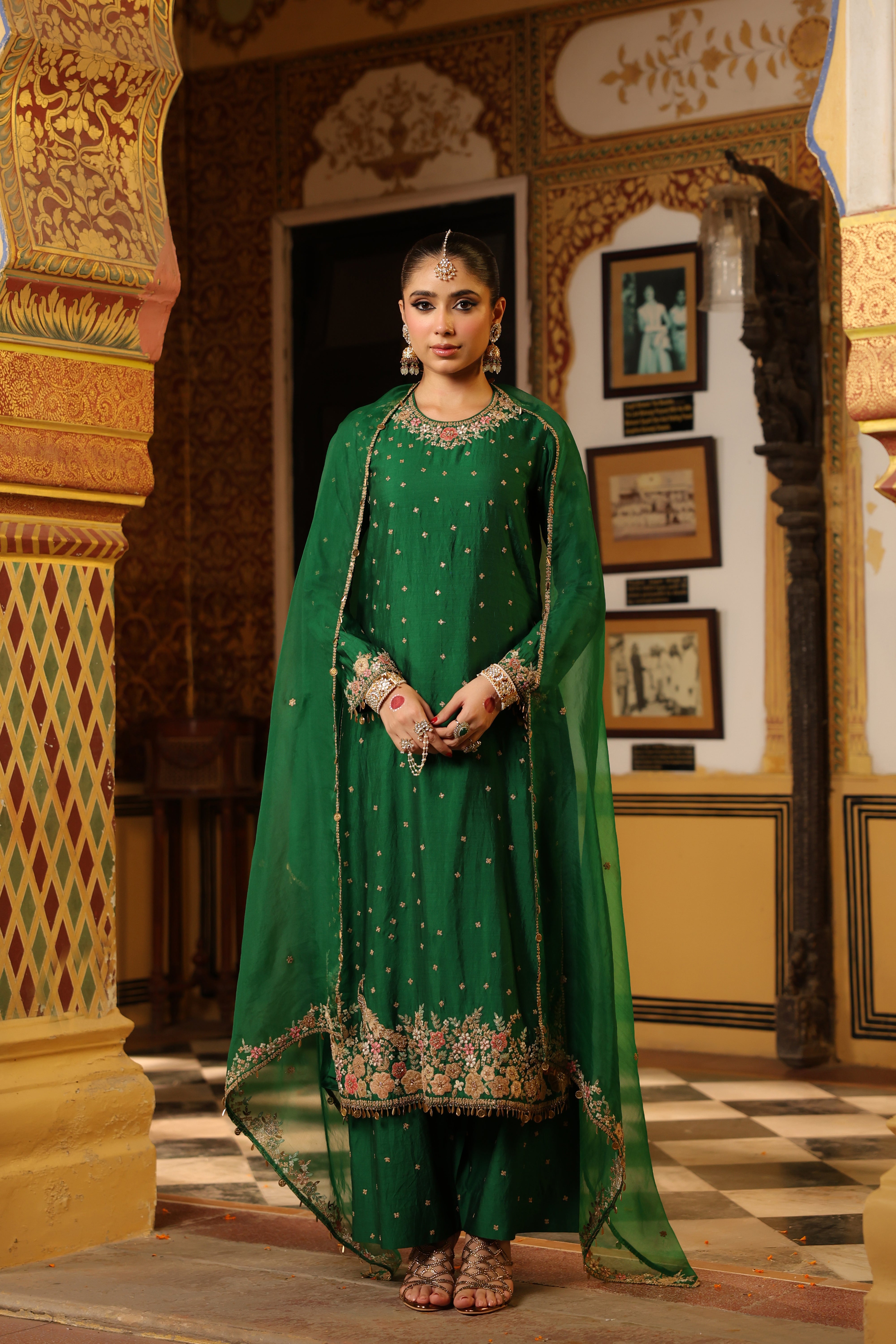 Ahista Green Mayur Applique Frockstyle Kurta Set