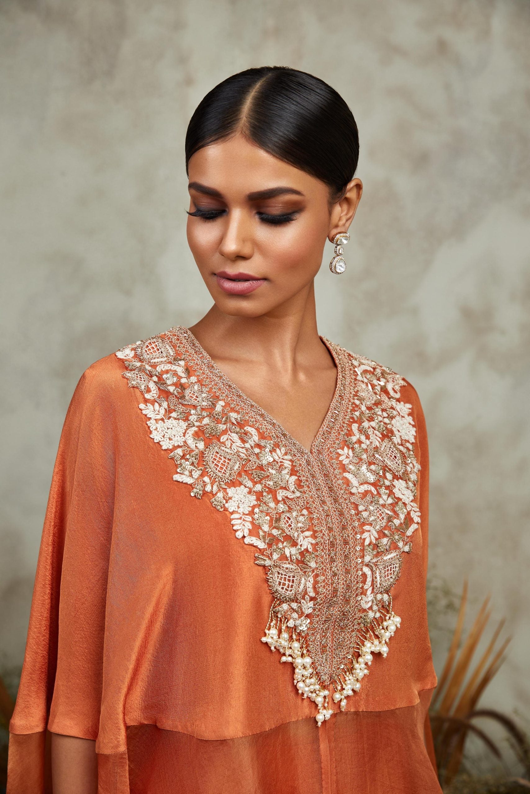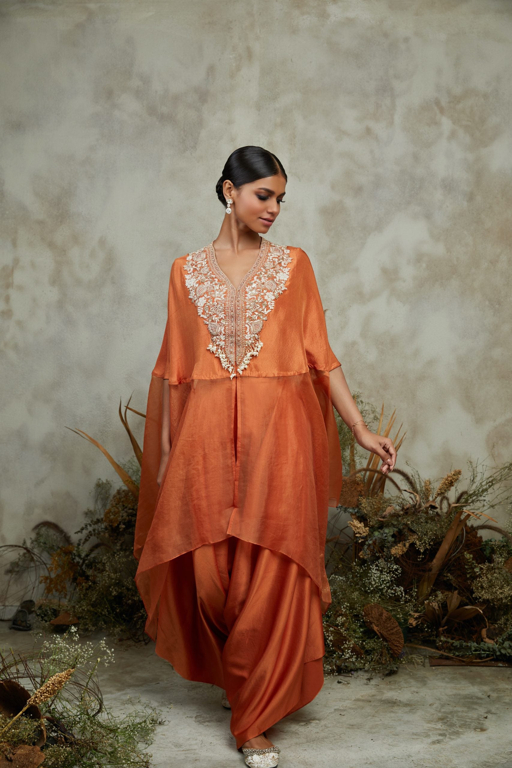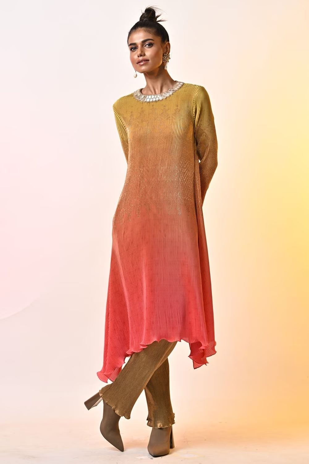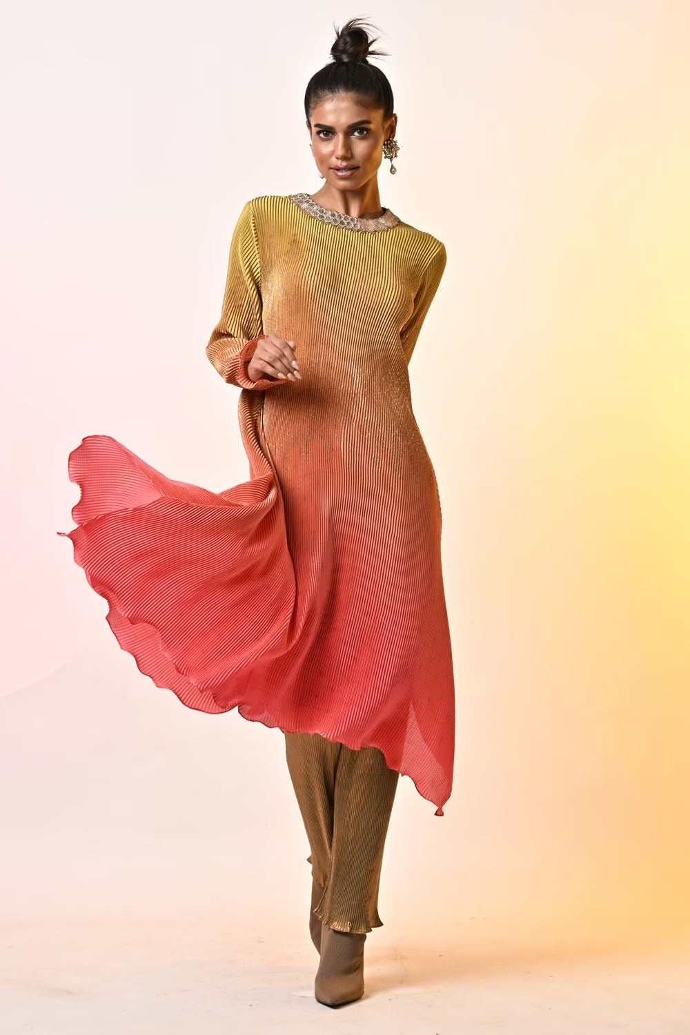Coral ombre pleated kaftan