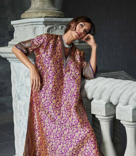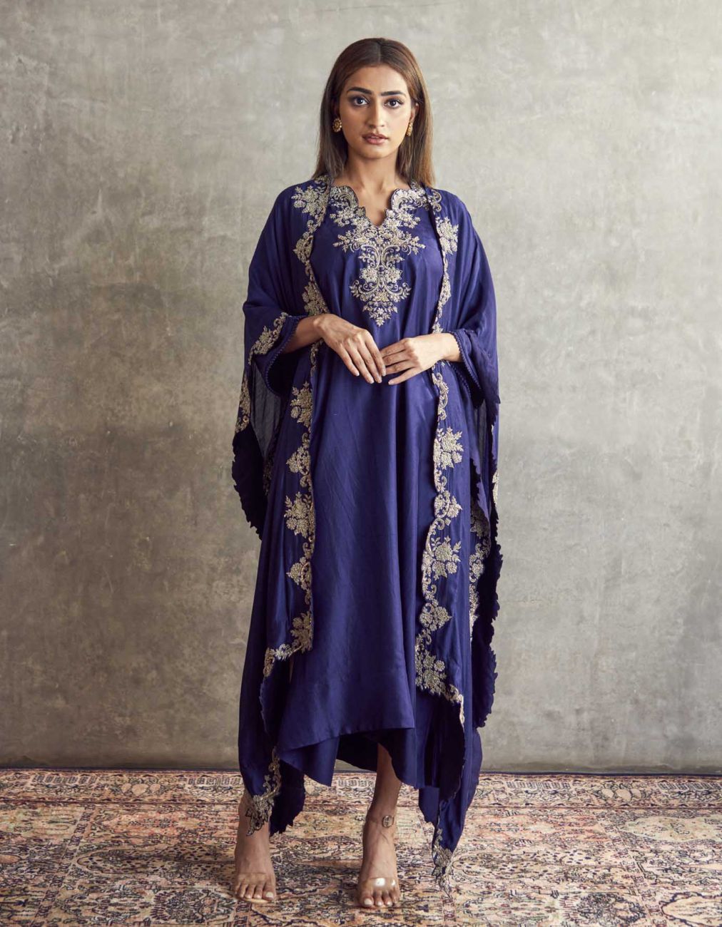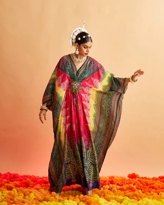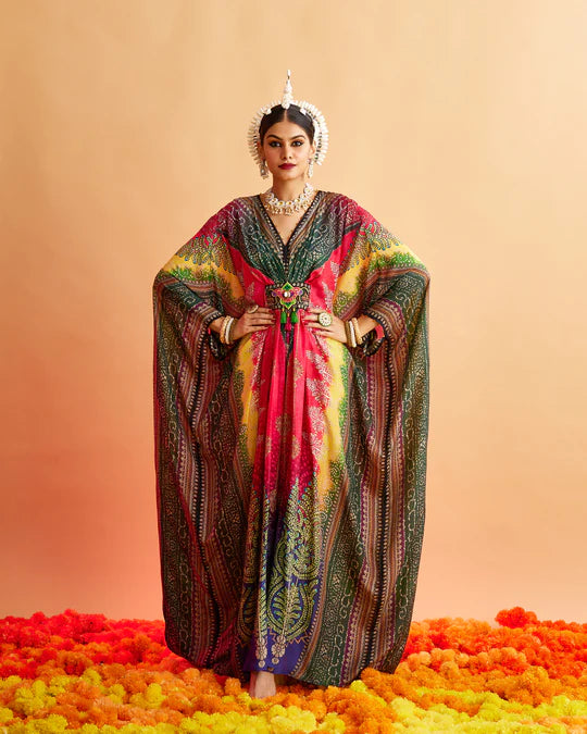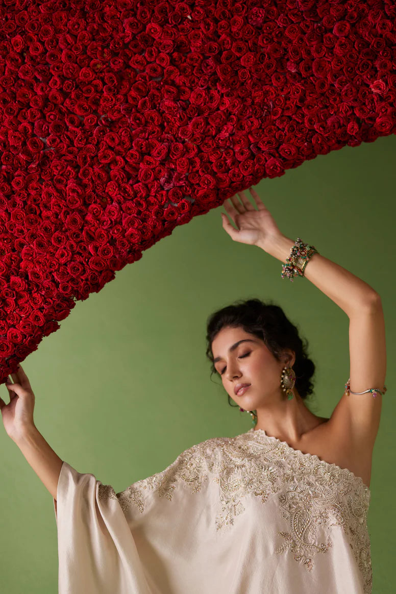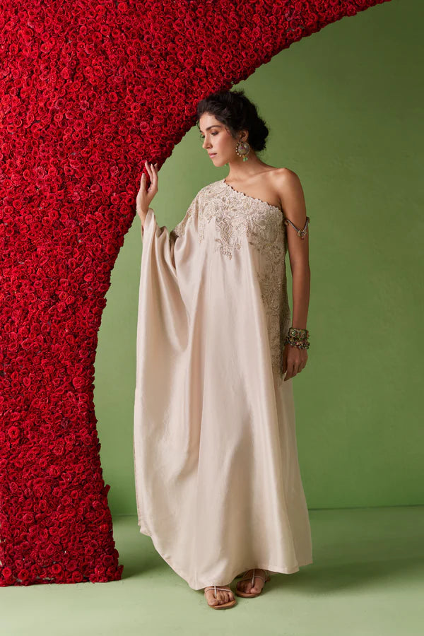Champagne Dupion Silk Multi Thread Work Kaftan Set