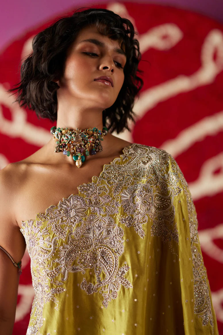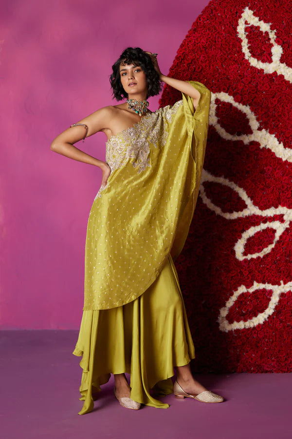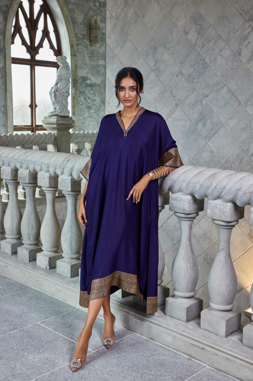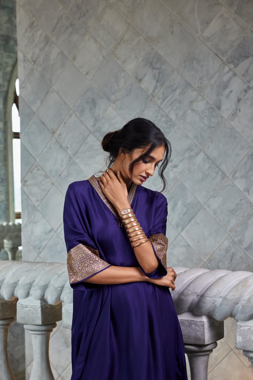 Champagne Dupion Silk Multi Thread Work Kaftan Set