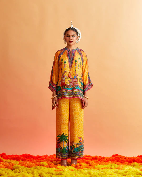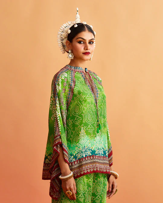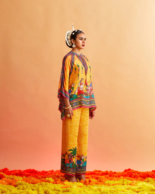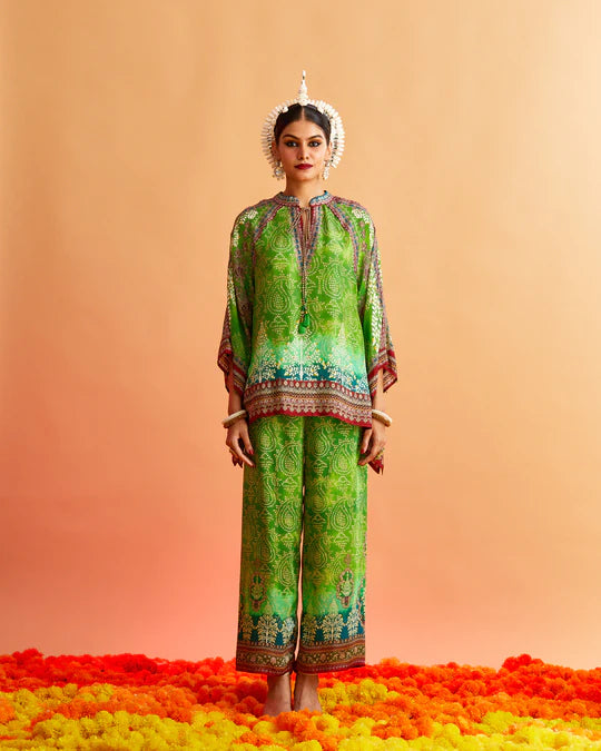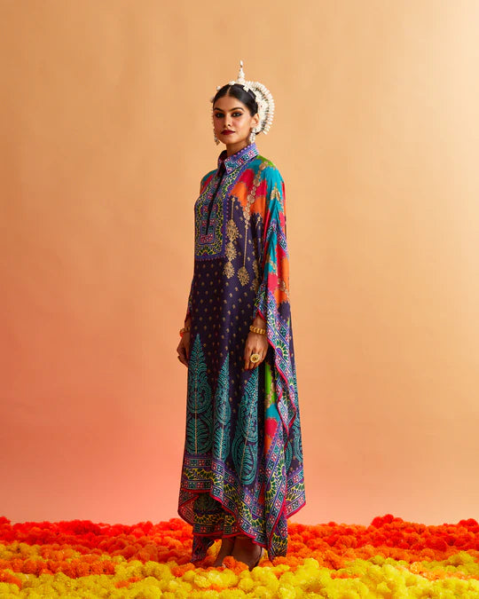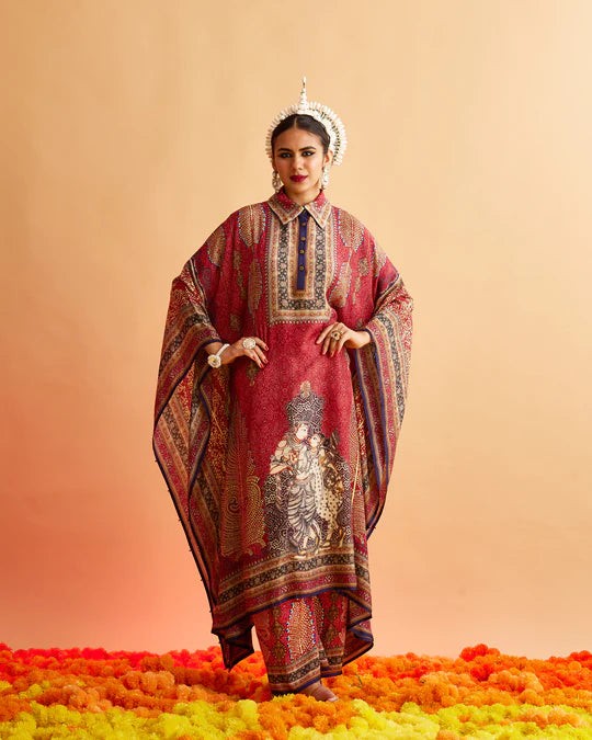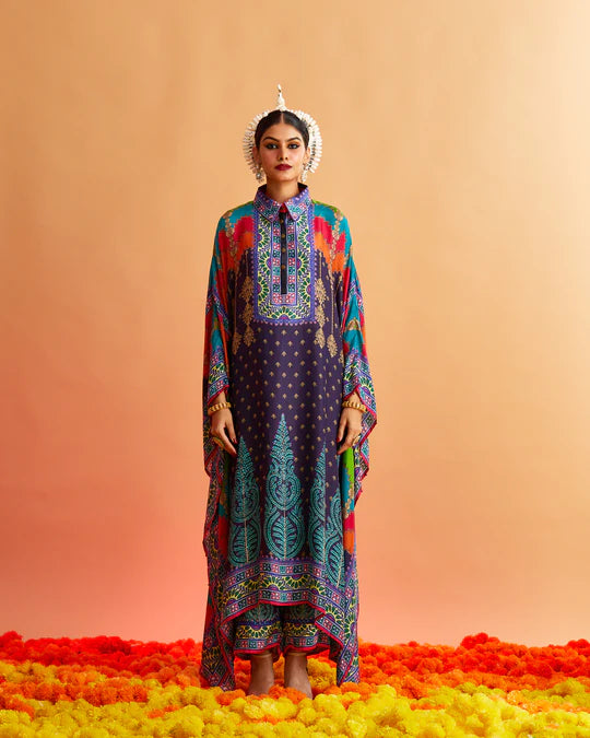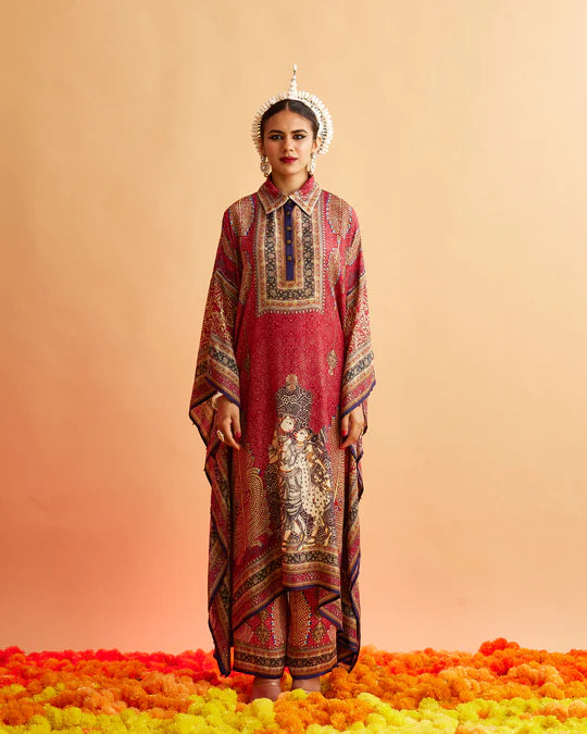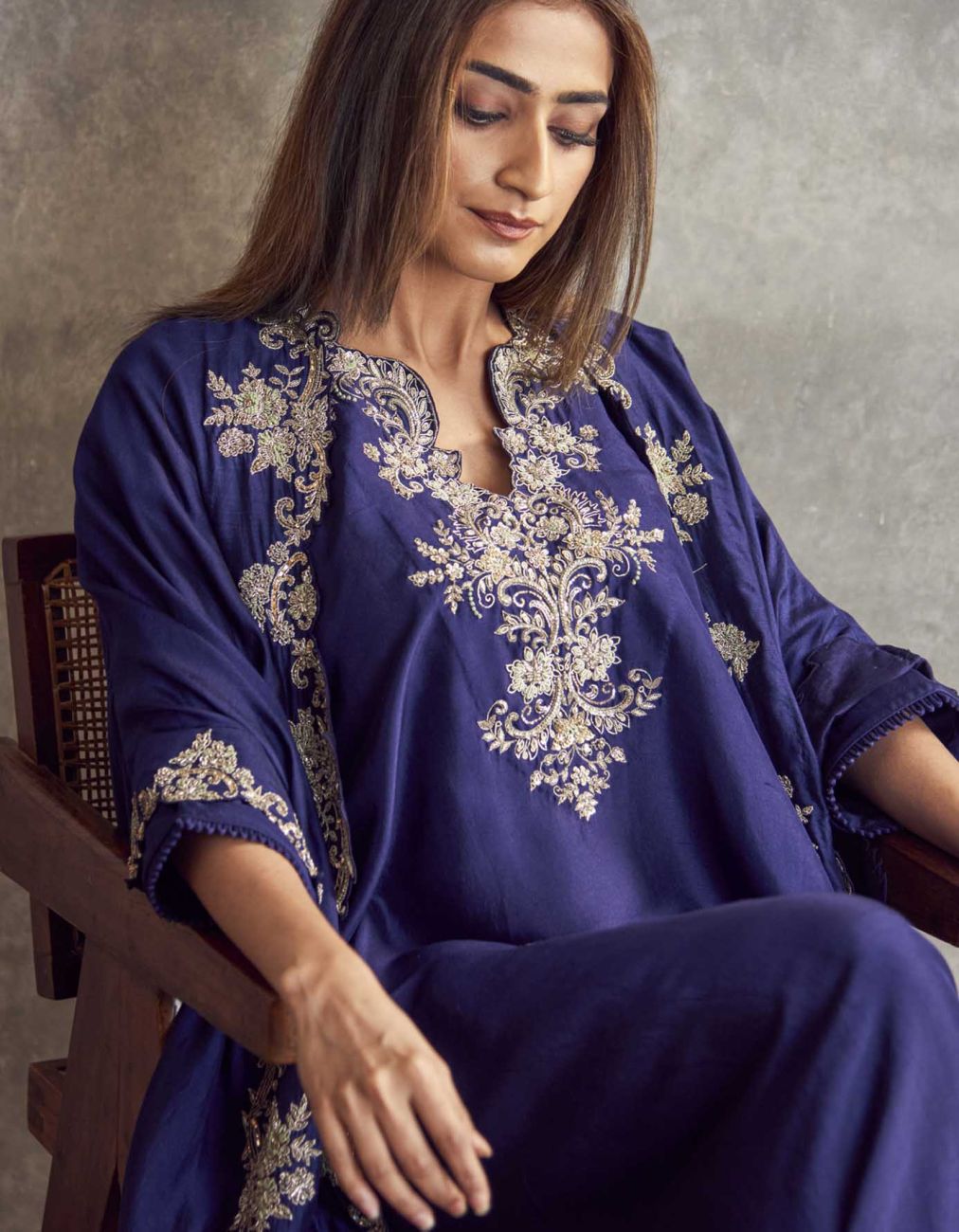Pink Embroidered Kaftan Paired With Palazzo Pants