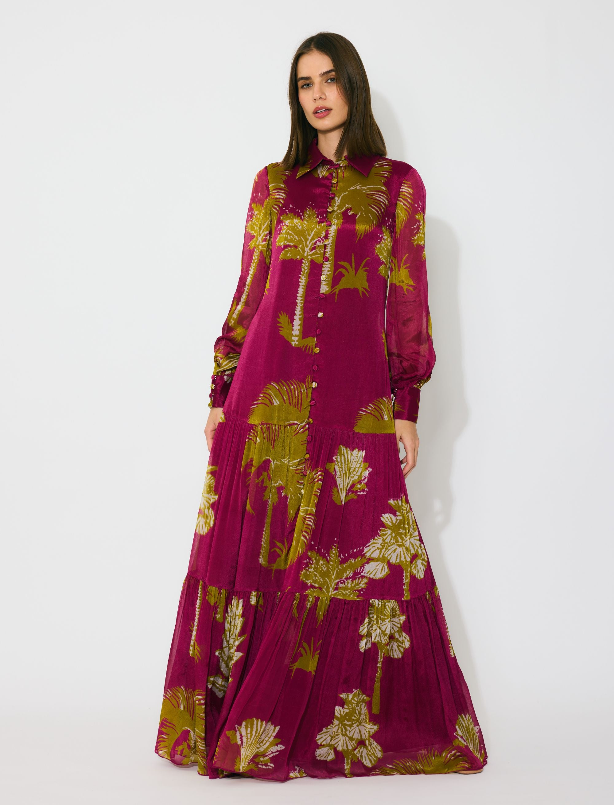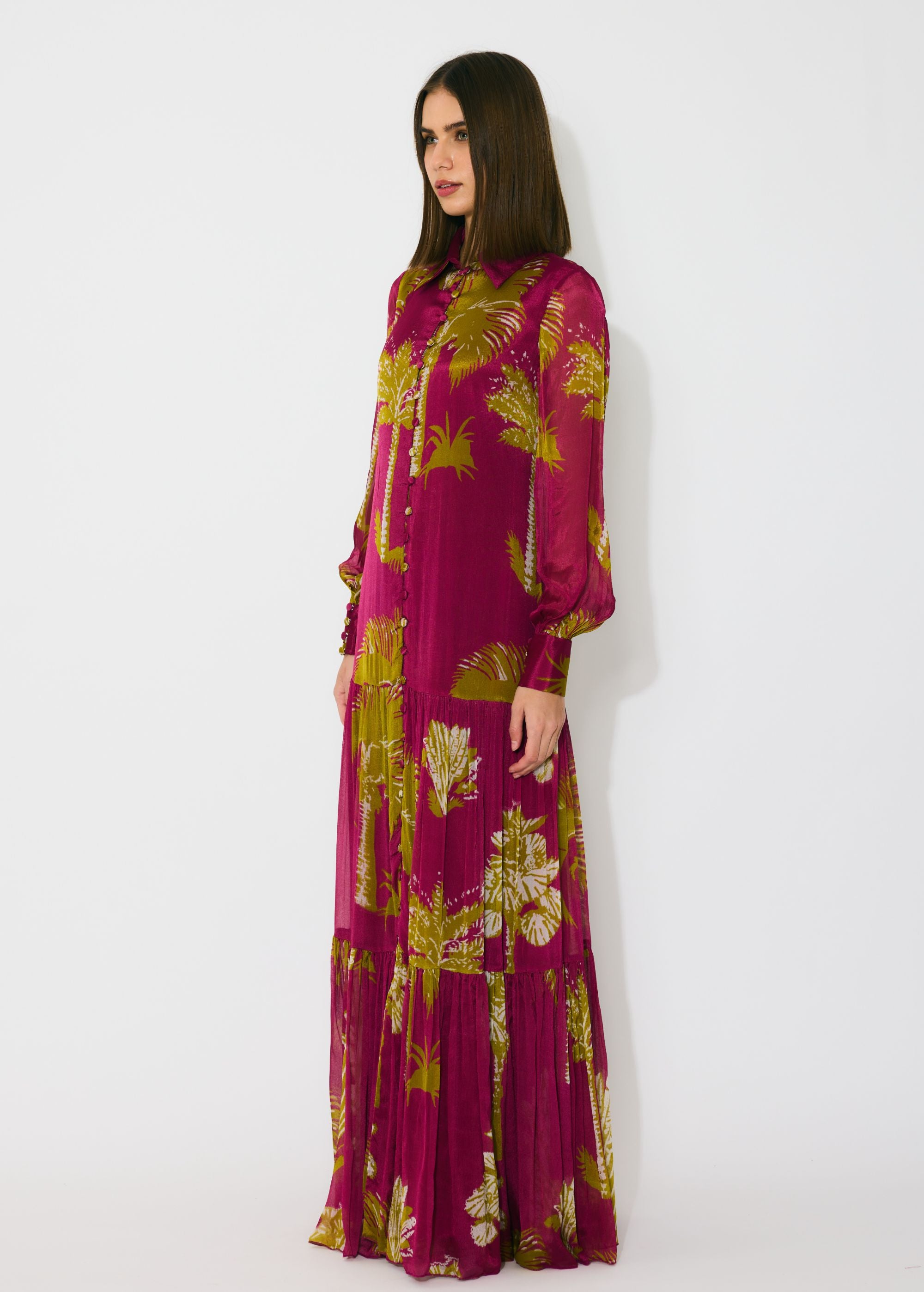 HOT PINK, MUSTARD AND WHITE FLORAL LONG DRESS