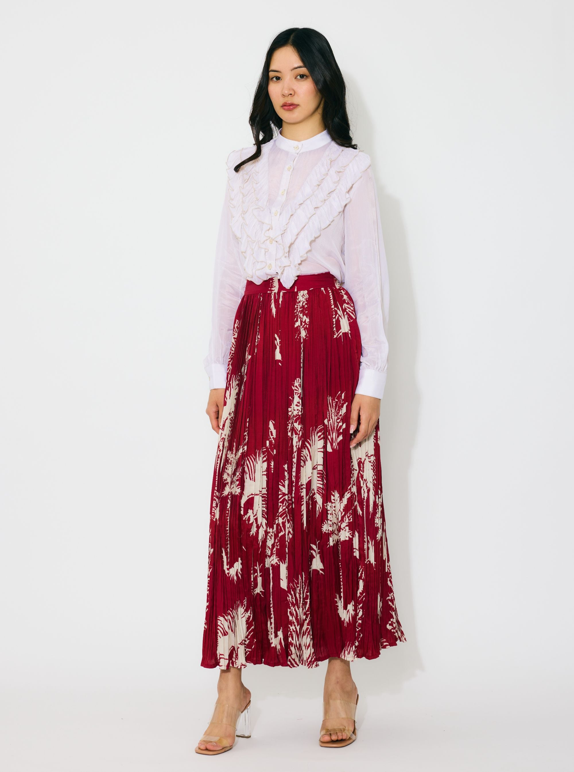 OFF WHITE AND RED SLEEVELESS LONG DRESS
