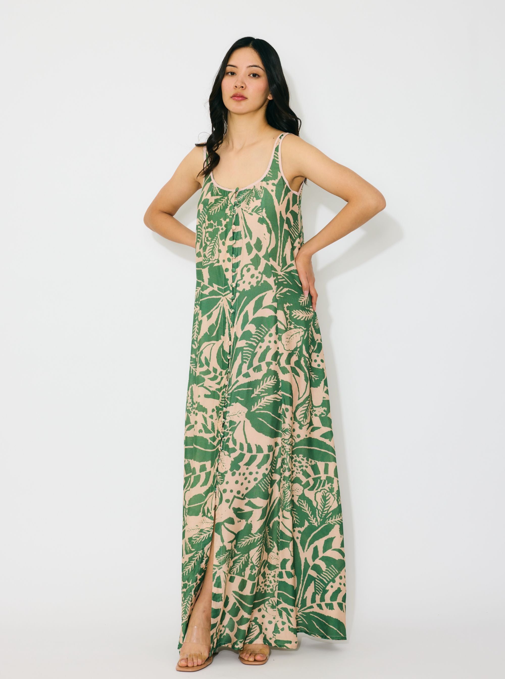 PEACH AND GREEN SLEEVELESS LONG DRESS