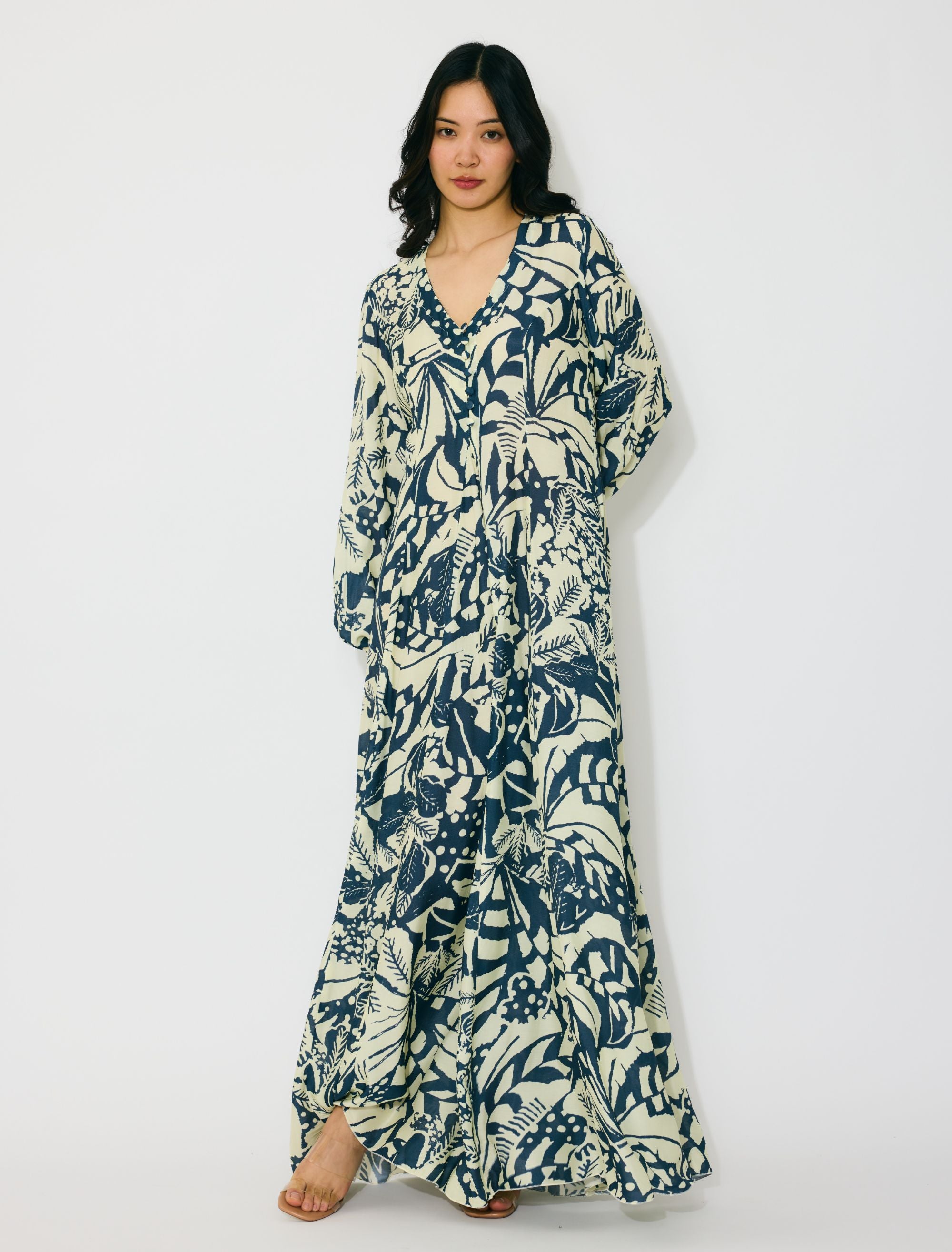 OFF WHITE AND INDIGO LONG DRESS