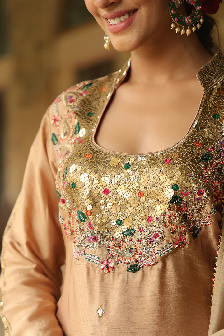 Ivory Zardozi Paisley Matka Neck (Pocket)