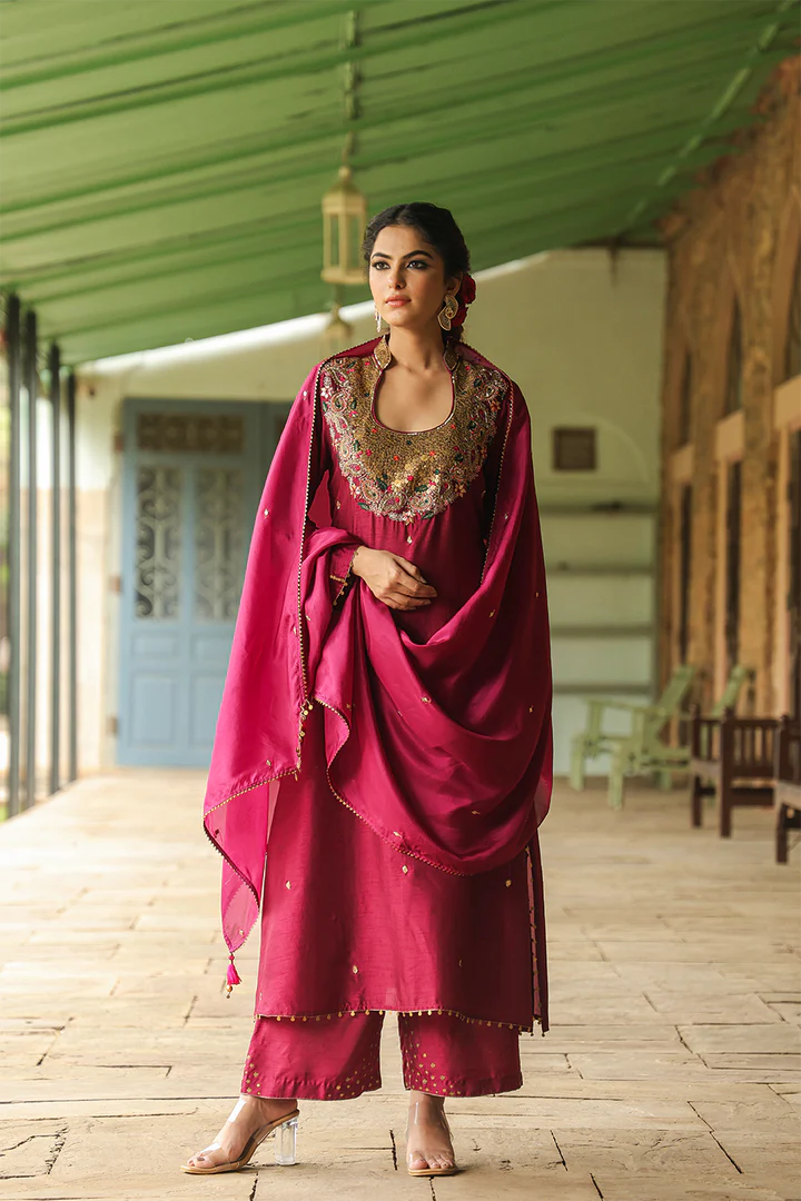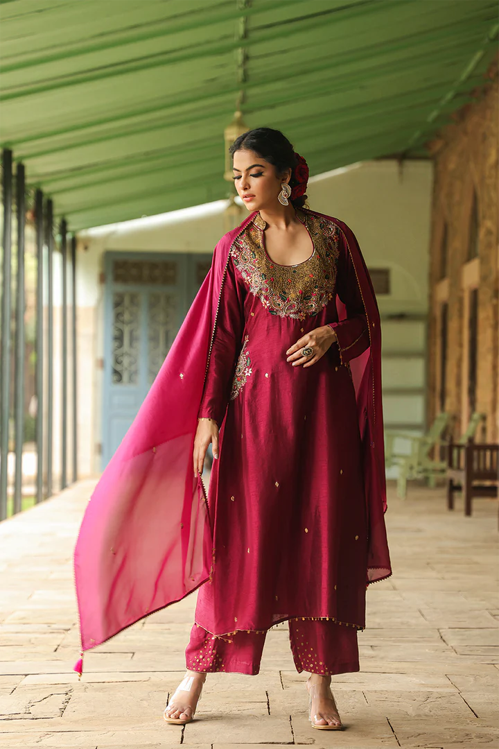 Wine Zardozi Paisley Matka Neck (Pocket)