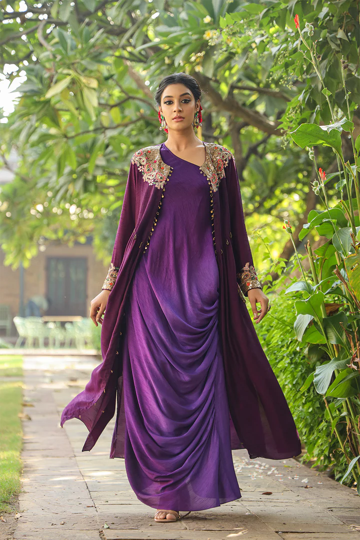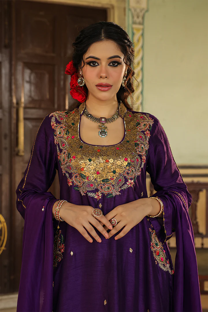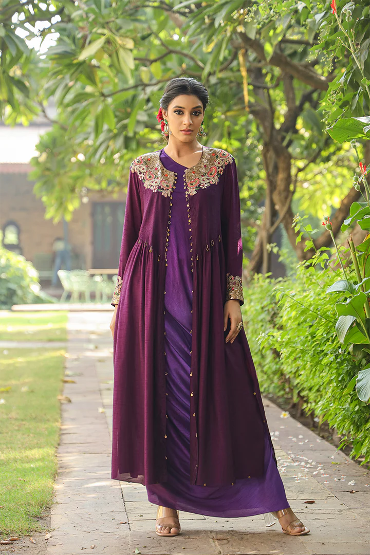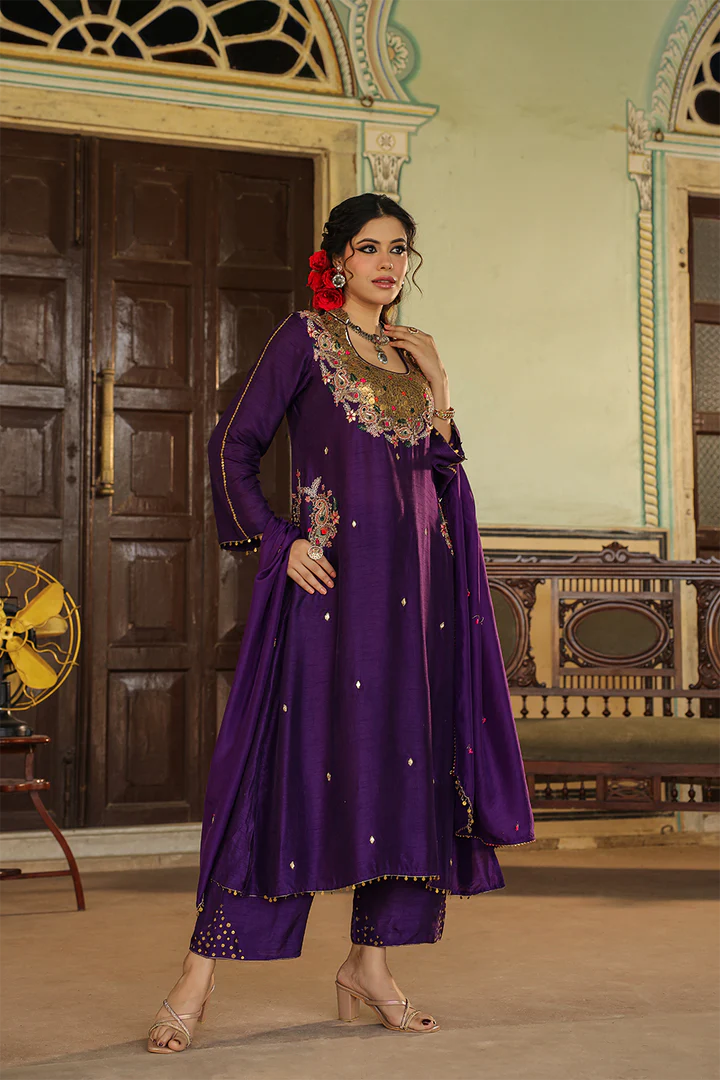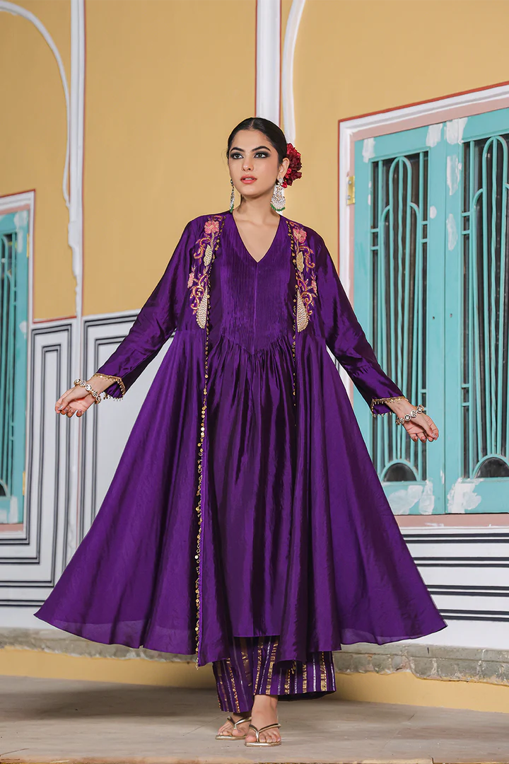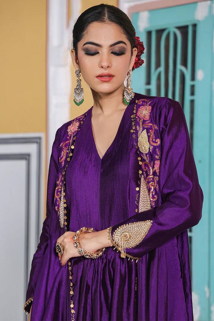 Purple Zardozi Paisley Matka Neck (Pocket)
